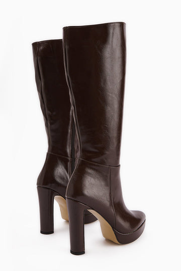 Ariya – Braun kniehoher Stiefel mit Reißverschluss, Plateau und Absatz (Damen)