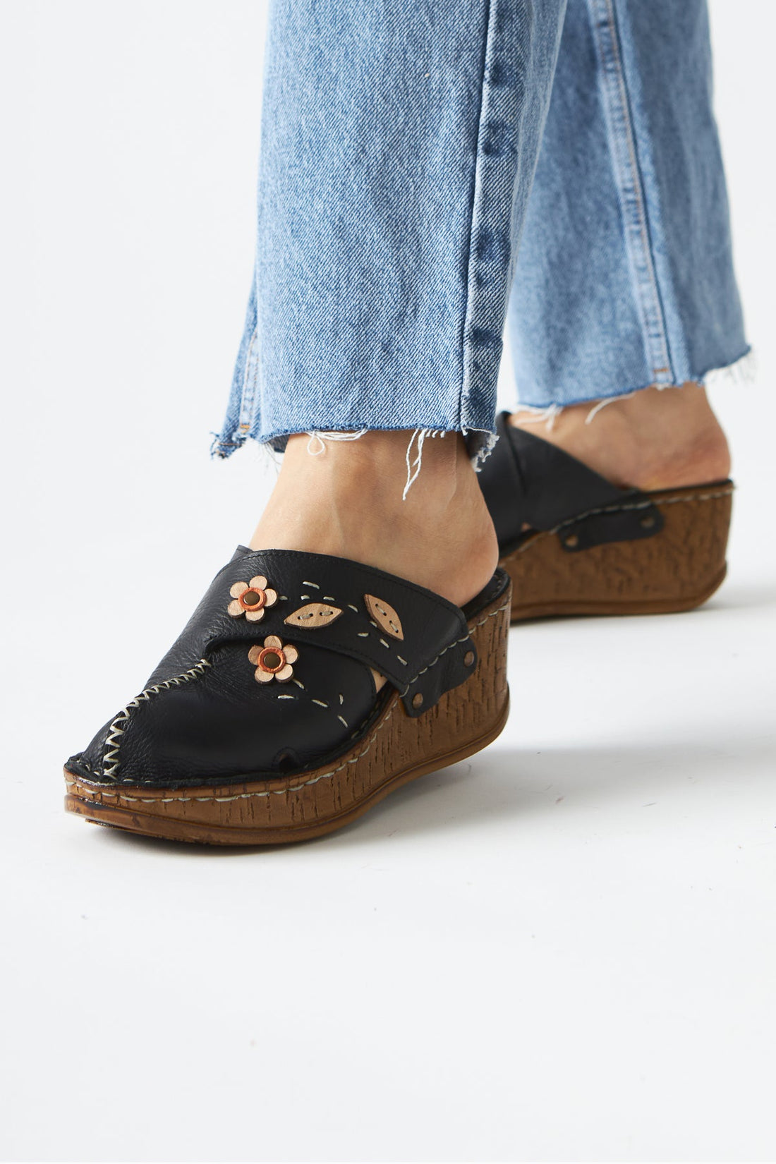 Alto Schwarz Echtes Leder Komfort Pantoletten mit Distressed Sohle
