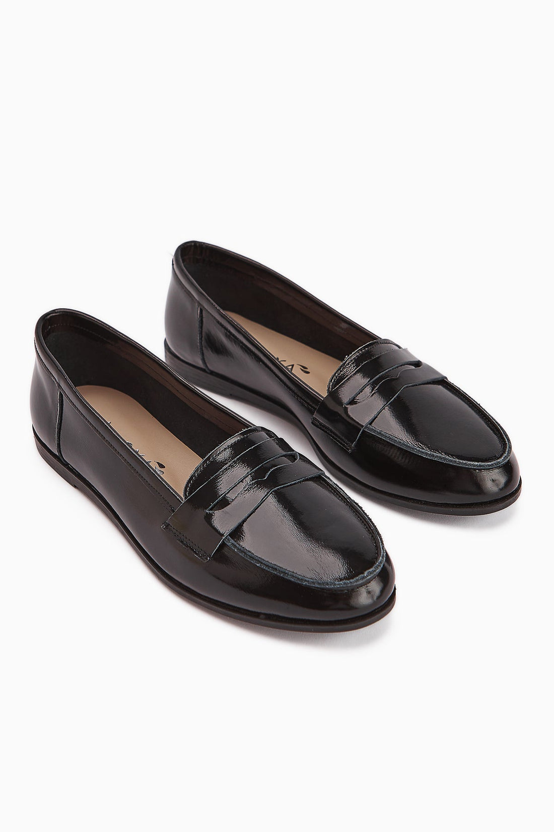 Solina Genuine Leather Black Patent Moccasin Shoes Comfortable Daily Loafers