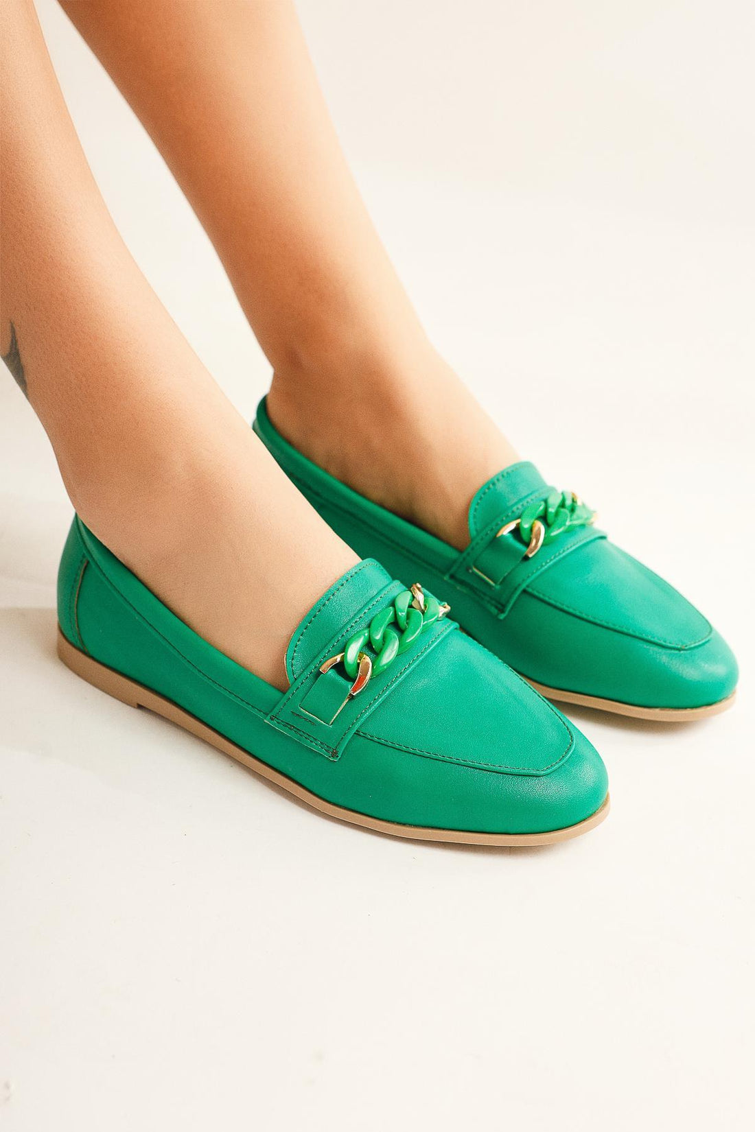 Fathie Grüne Ballerinas mit Kettenschnallen-Detail