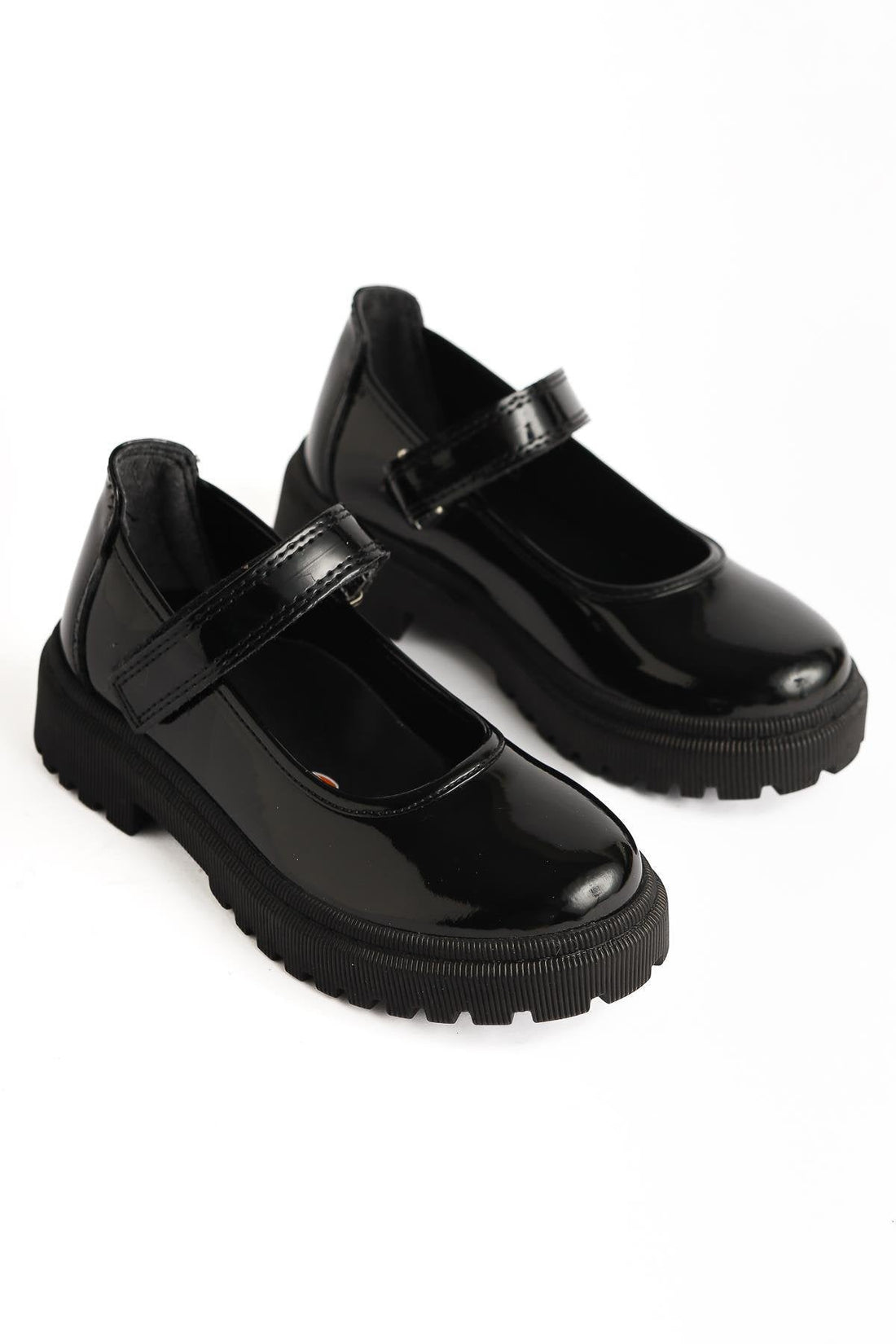 Janina Schwarze Lackleder Klettverschluss Detaillierte Kinder Freizeitschuhe