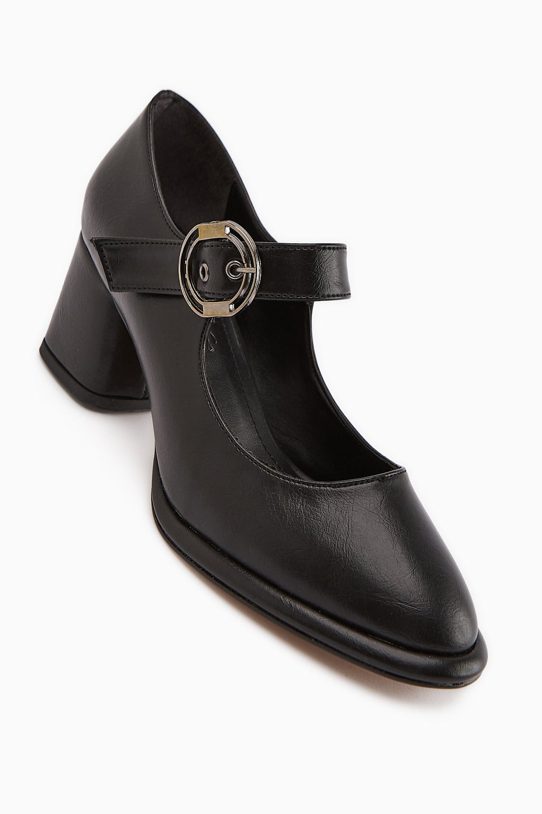 Emmy Black Buckled Low Heel Women's Shoes
