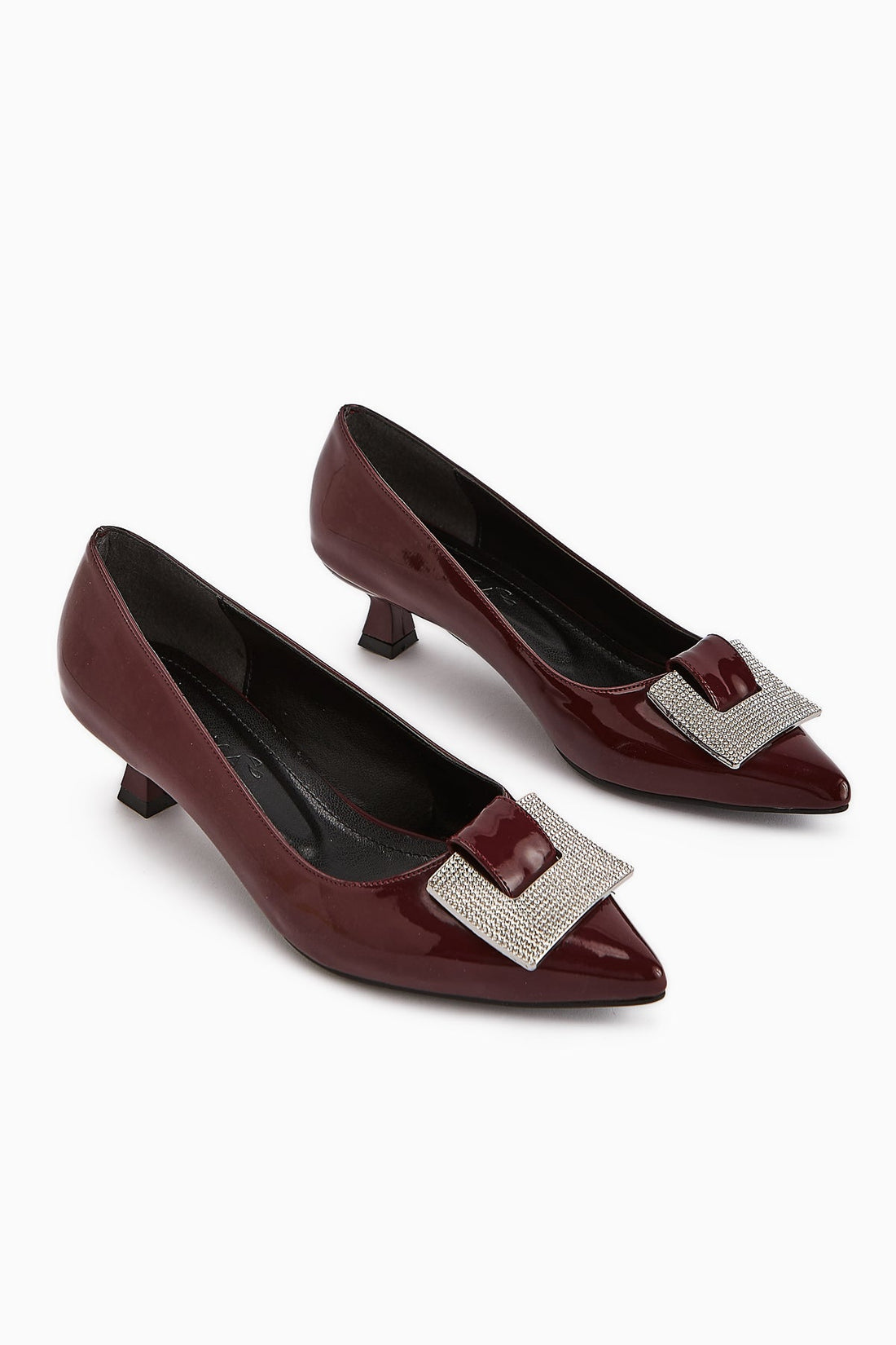 Lini Burgundy Patent Leather Buckled Low Heel Women's Shoes
