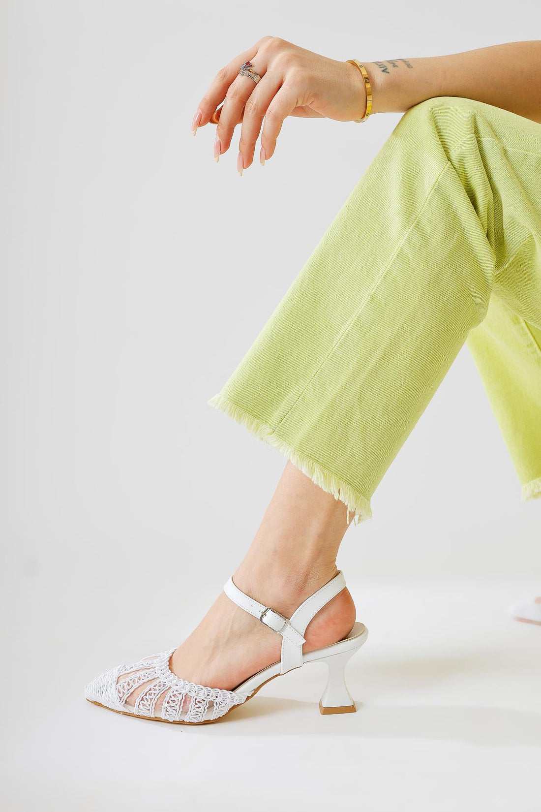 Richelle Weiße Gestrickte Sandalen mit Niedrigem Absatz