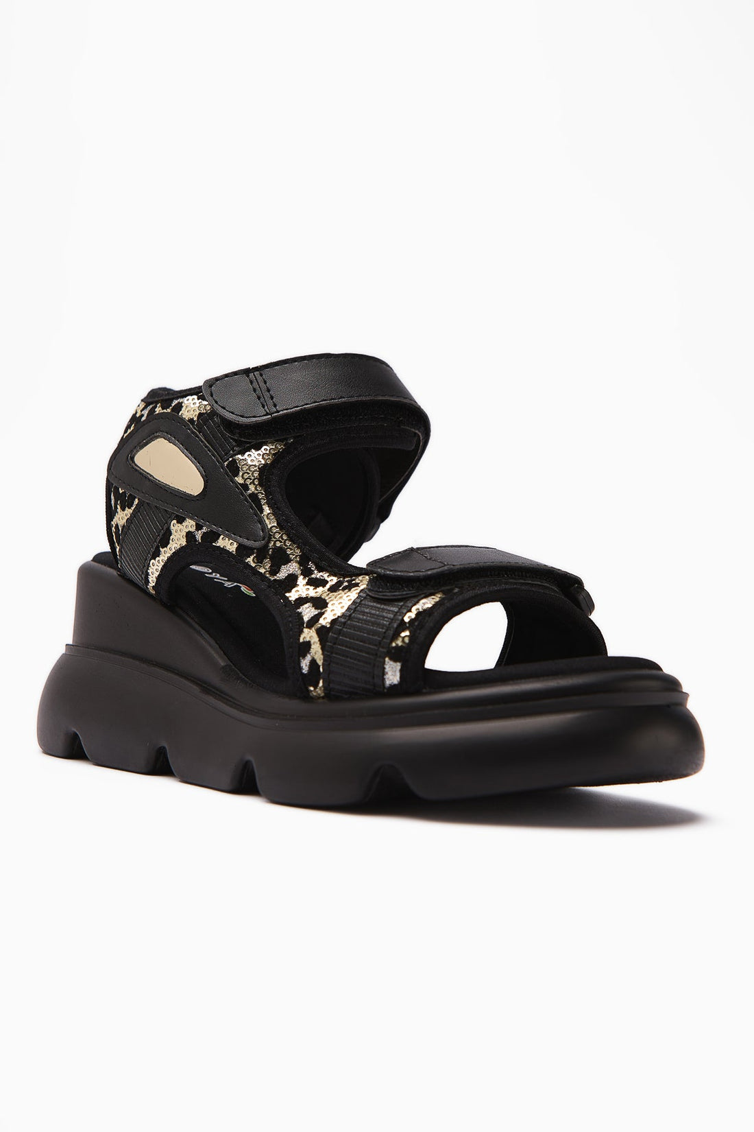 Anela Schwarze Plateau-Absatz Damen Sandalen mit Klettverschluss