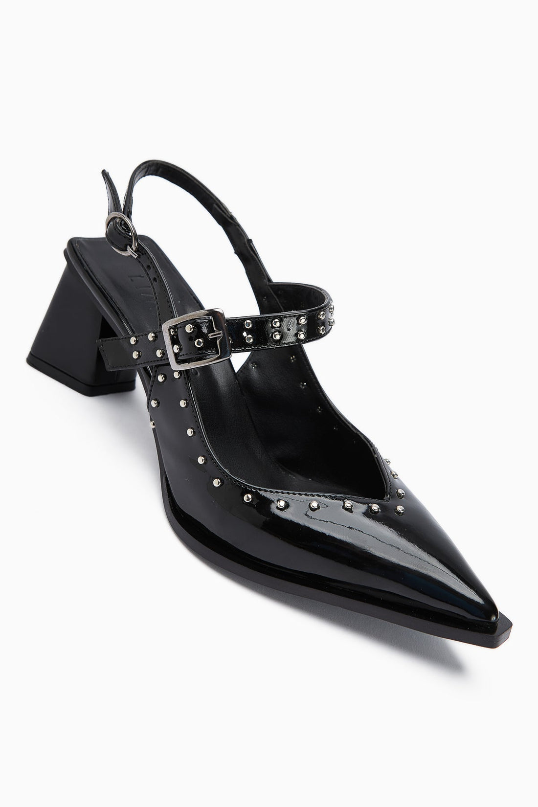 Nuria Schwarze Lackleder Spitze-Zehen Riemen Damen Sandalen