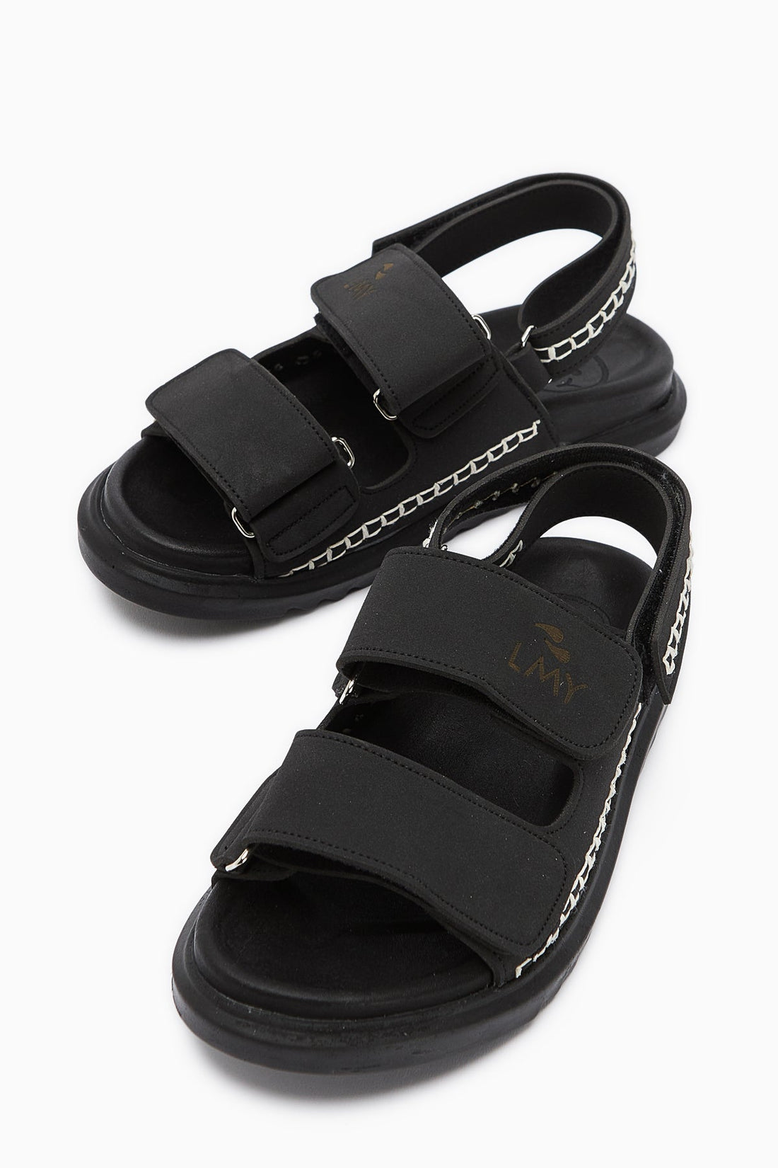 Sanna Damen Schwarze Sandale mit Stickerei Detail und Klettverschluss