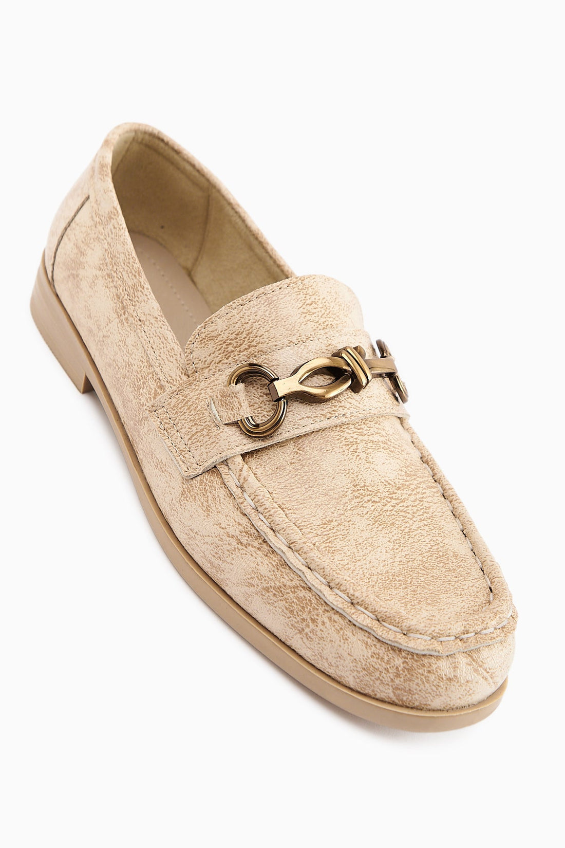 Arian Genuine Beige Leather Lace-Up Moccasin Daily Loafer