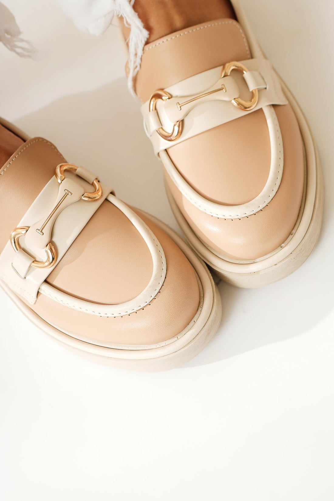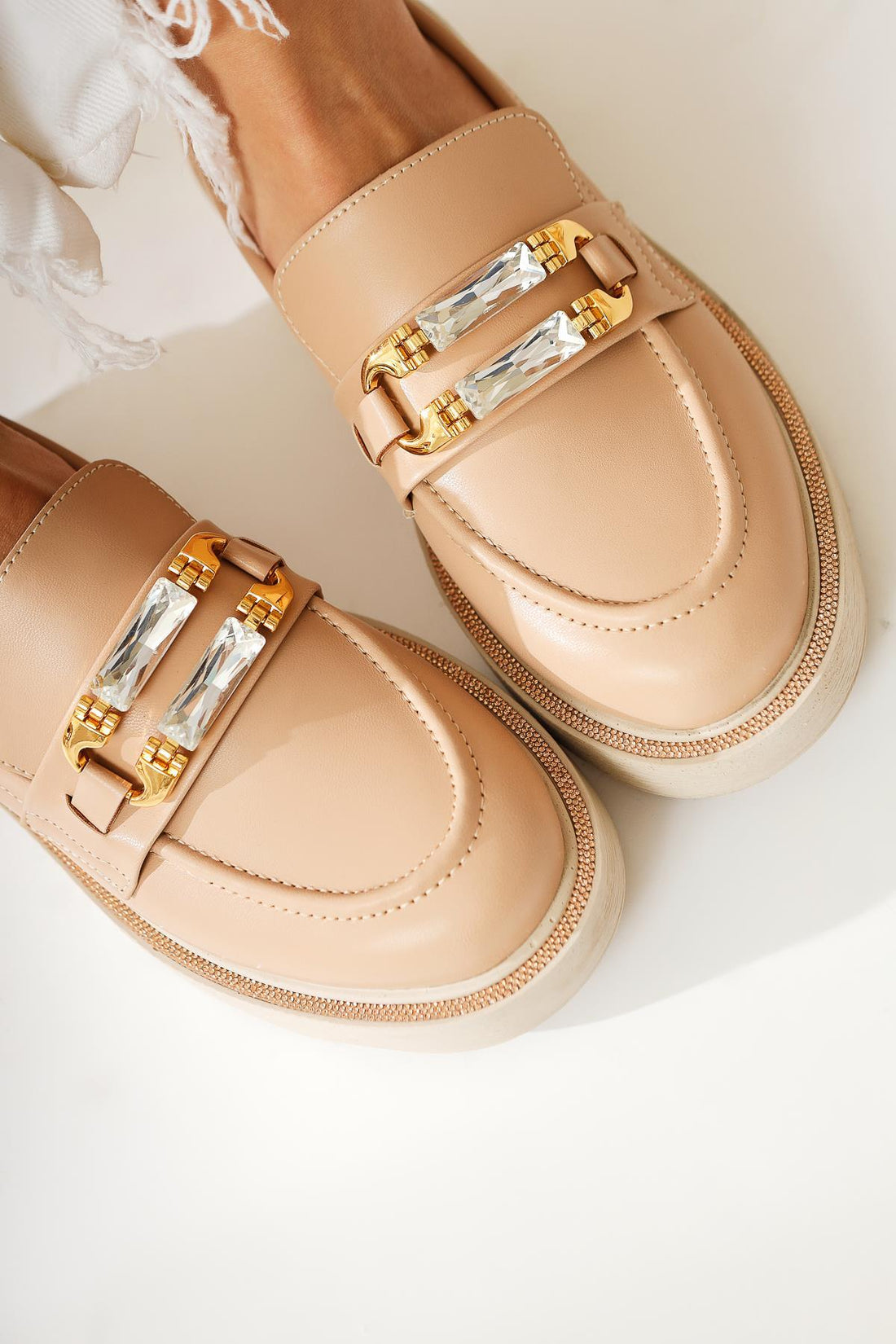 Larah Nude-Beige Schnallendetail Mokassin Schuhe