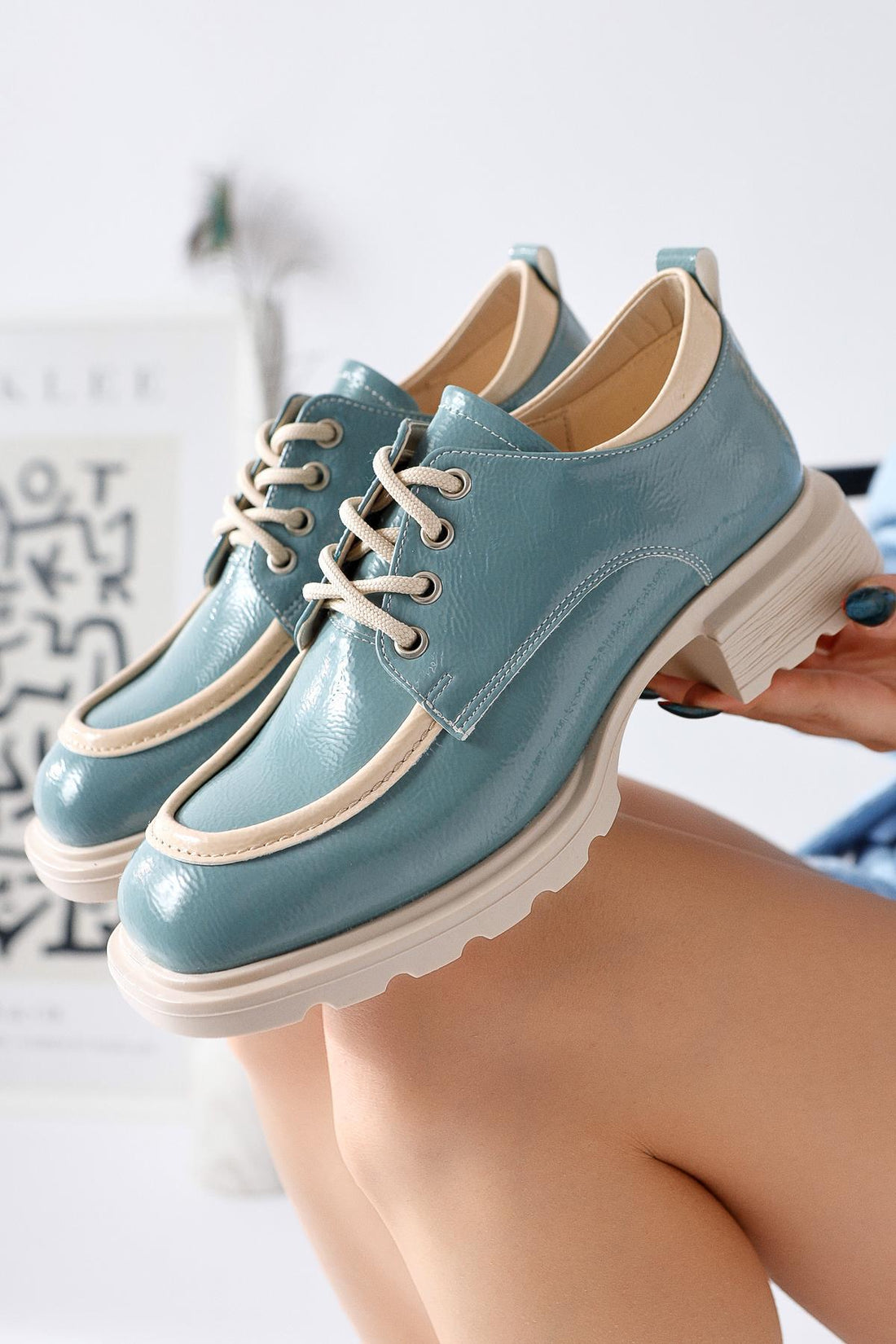 Begona Blaues Lackleder Quastendetail Alltagsschuh