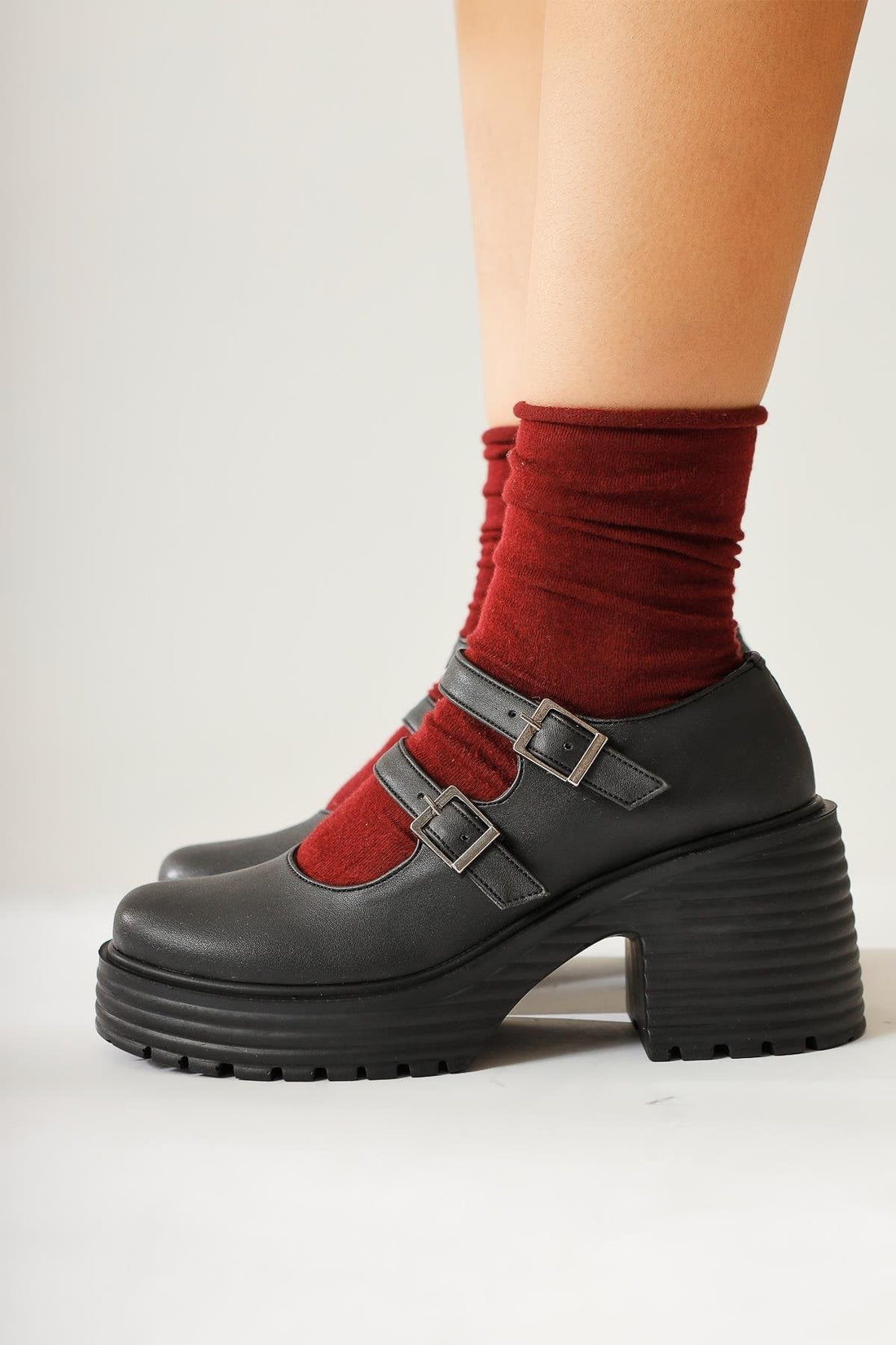Roselie Schwarze Dicke-Sohle Absatz Doppelriemen Alltagsschuhe