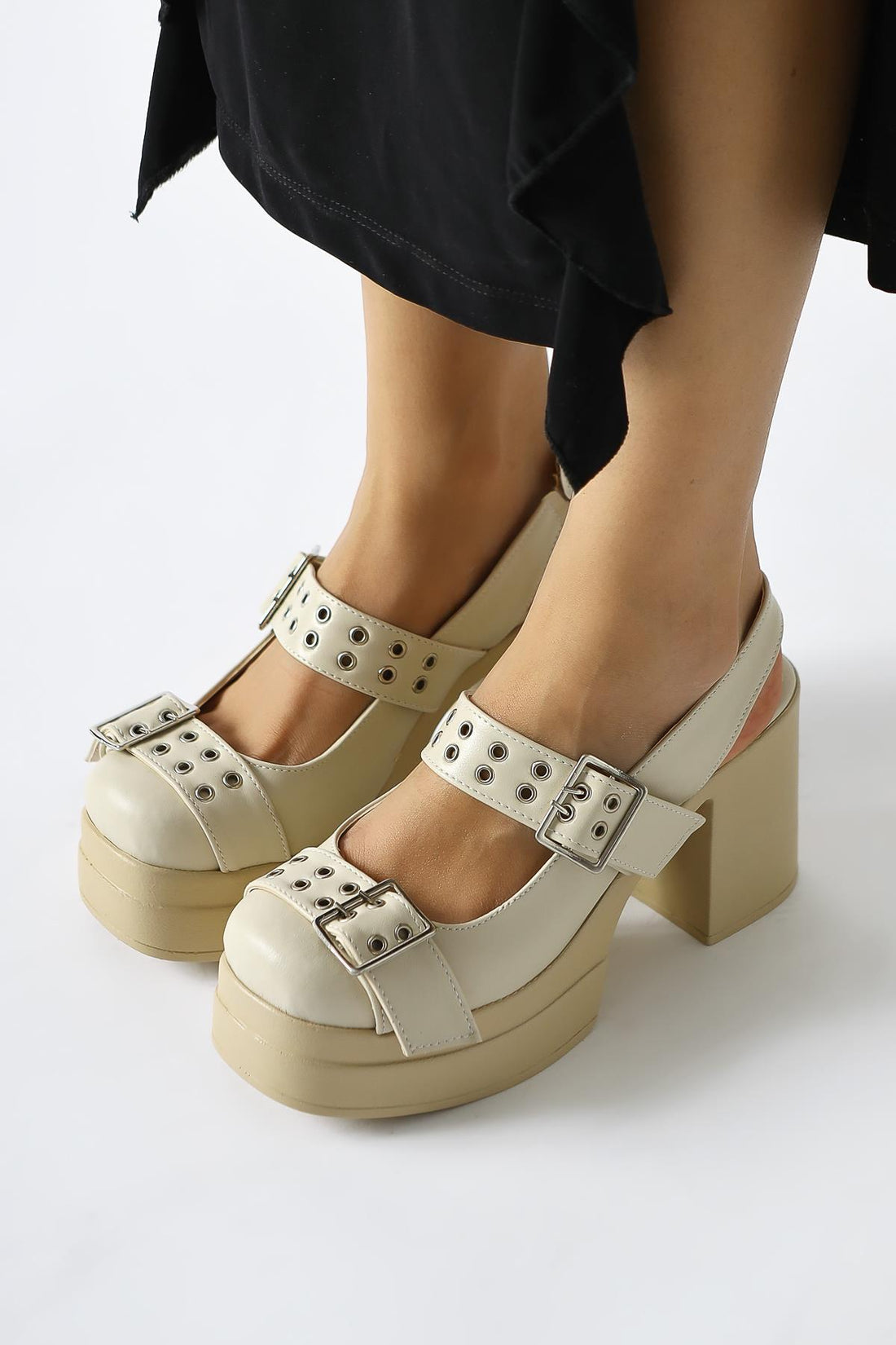 Marise Genuine Leather – Beige Oval-Toe Platform Double-Strap-Detail Casual Shoe (Women)