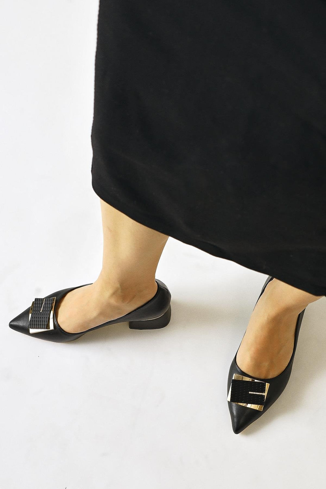 Cindie - Black Asymmetric Buckle-Detail Low-Heel Shoe (Women)
