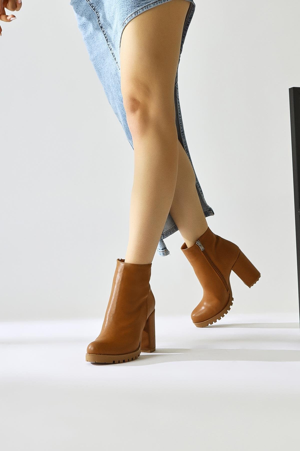 Bahiya – Cognac Oval-Toe Zippered Heeled Boot (Women)