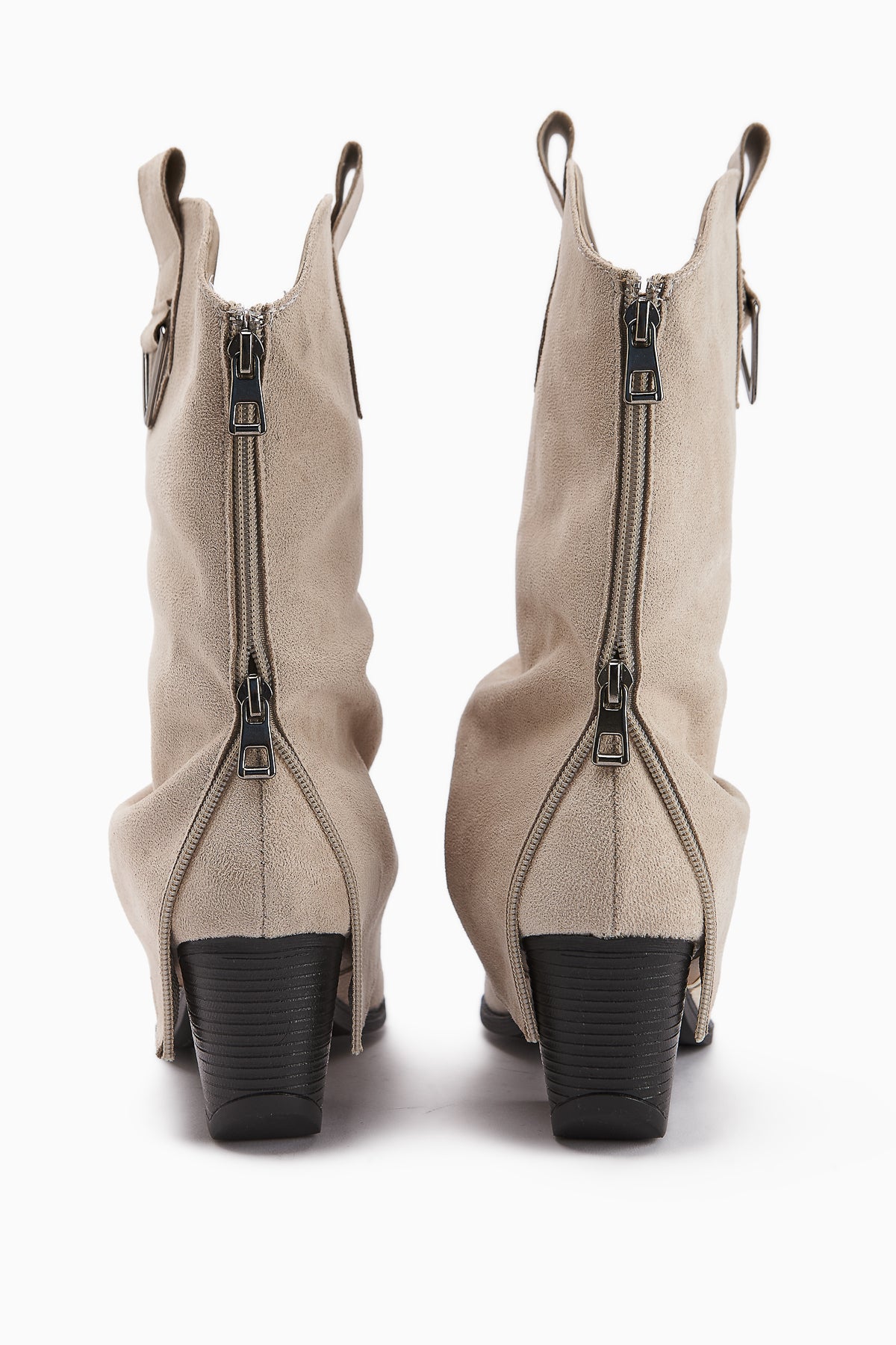 Peggy – Beige Suede Heeled Western Knee-High Boot (Women)