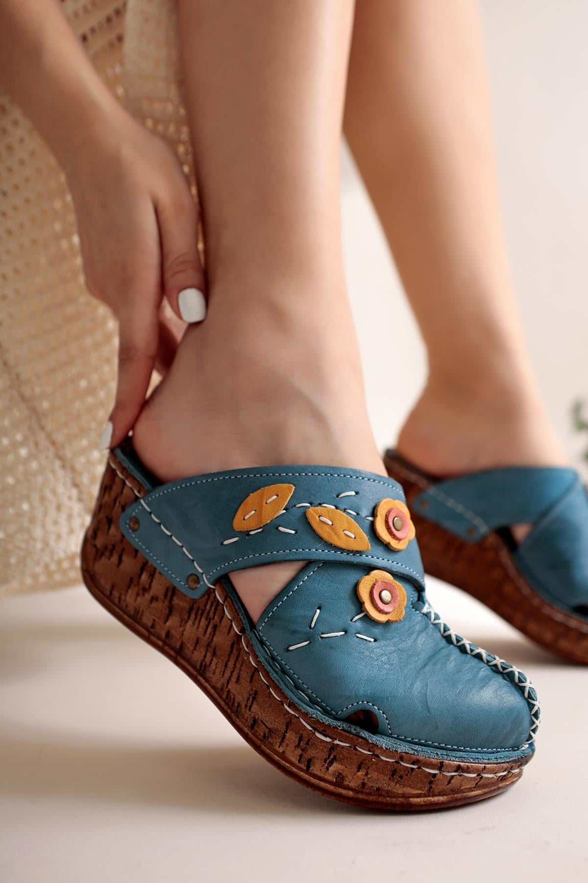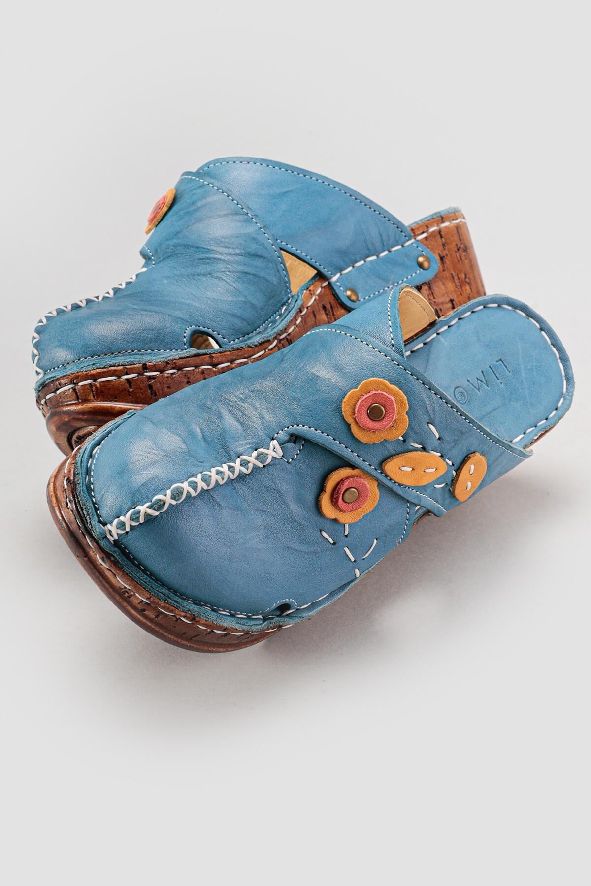 Alto Echtes Leder Dunkelblaue Komfort Pantoffeln mit Distressed Sohle