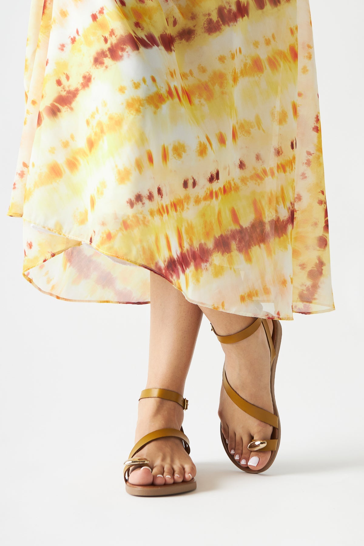 Anisa Senfgelb Kreuzriemen Geschnallt Damen Zehentrenner Sandalen