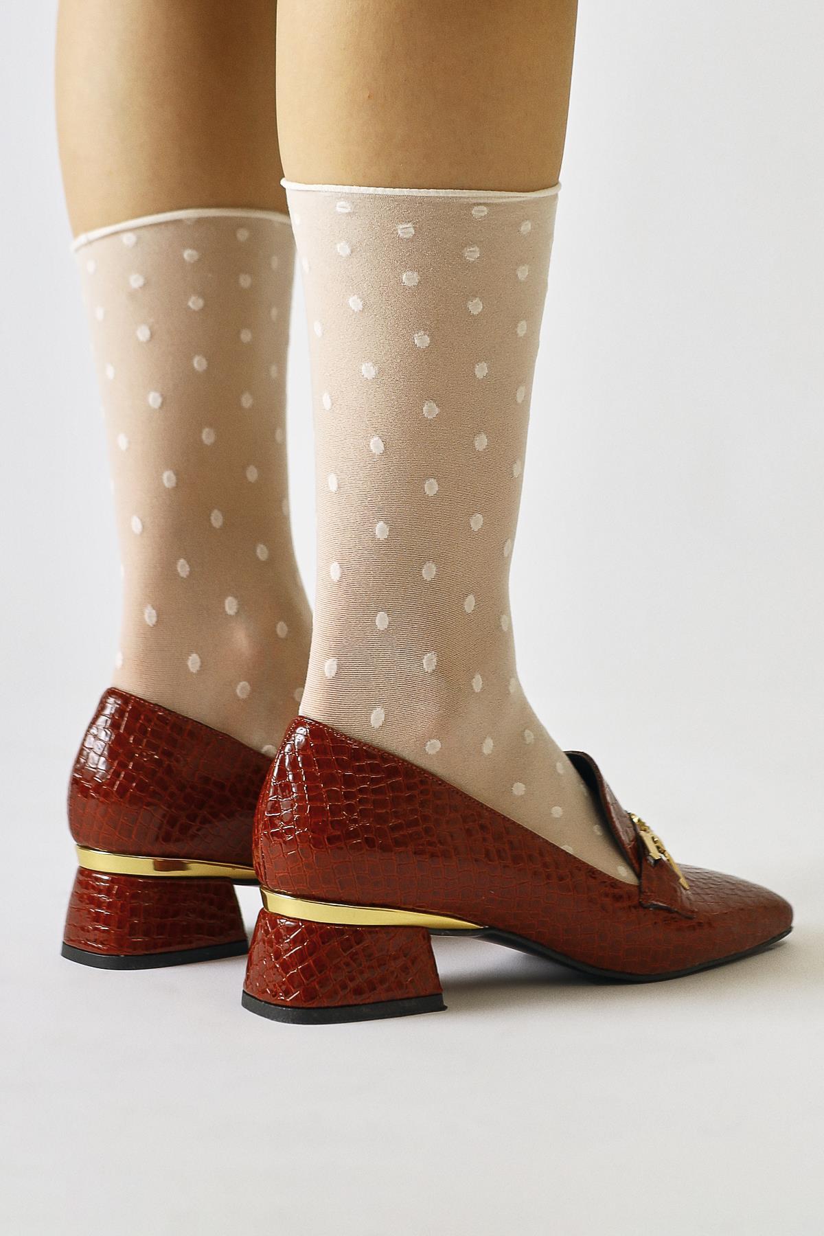 Bee – Burgunder Kroko-Prägung Schuh mit Schnallen-Detail und runder Zehenpartie (Damen)