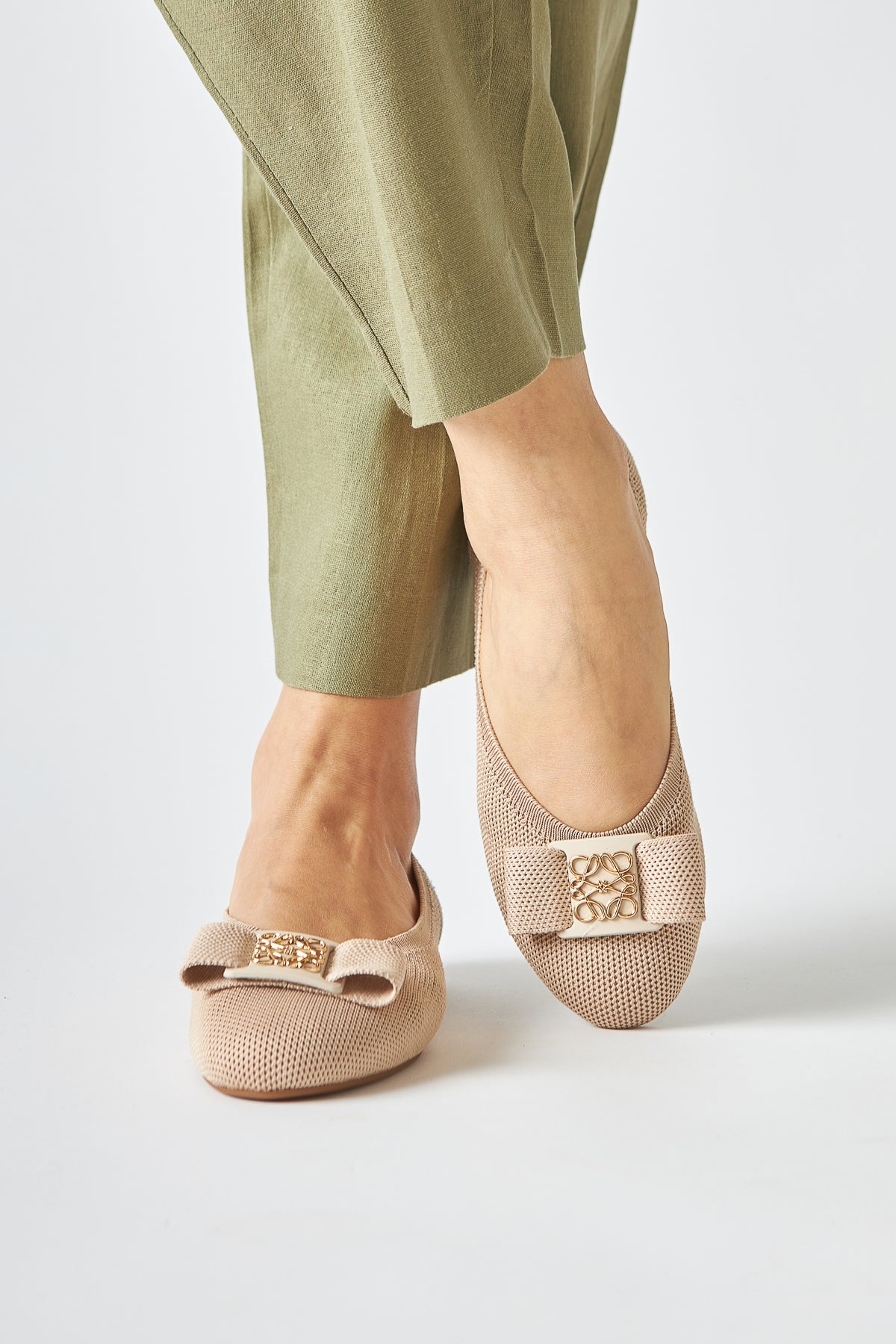 Bloop Beige Schleifen-Ballerina für Damen - Bequemer Alltagsschuh