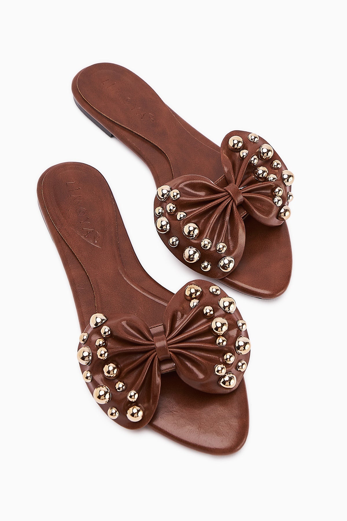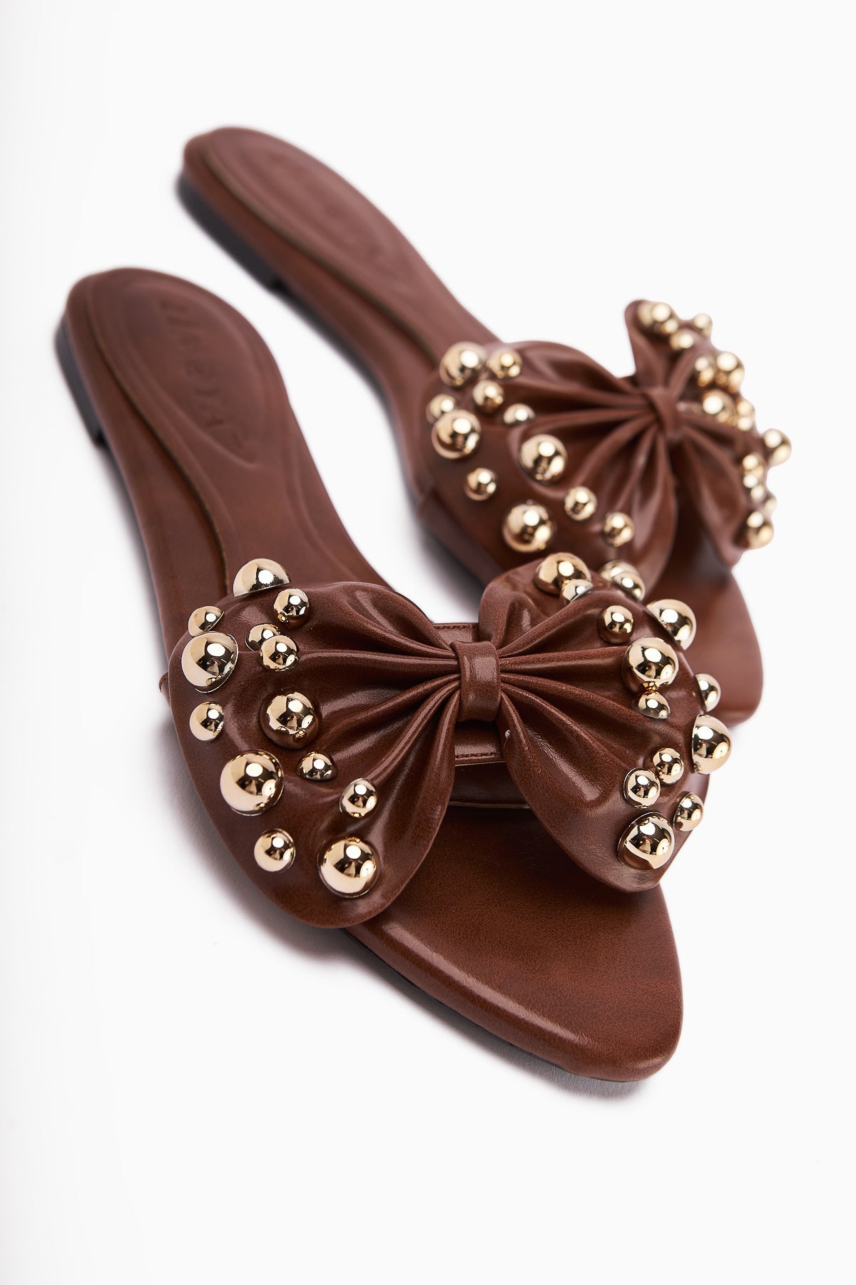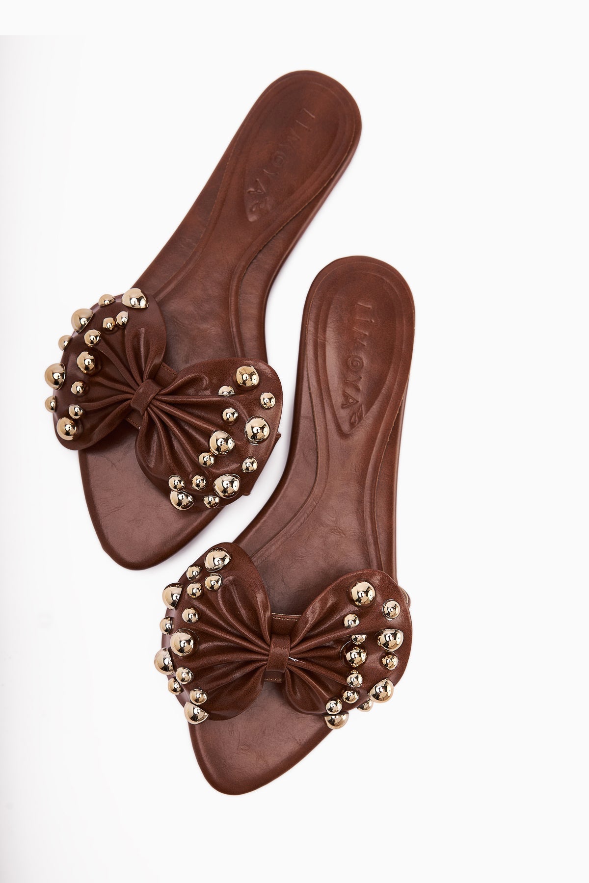Dotty Taba Nietenbesetzte Schleife Damen Hausschuhe