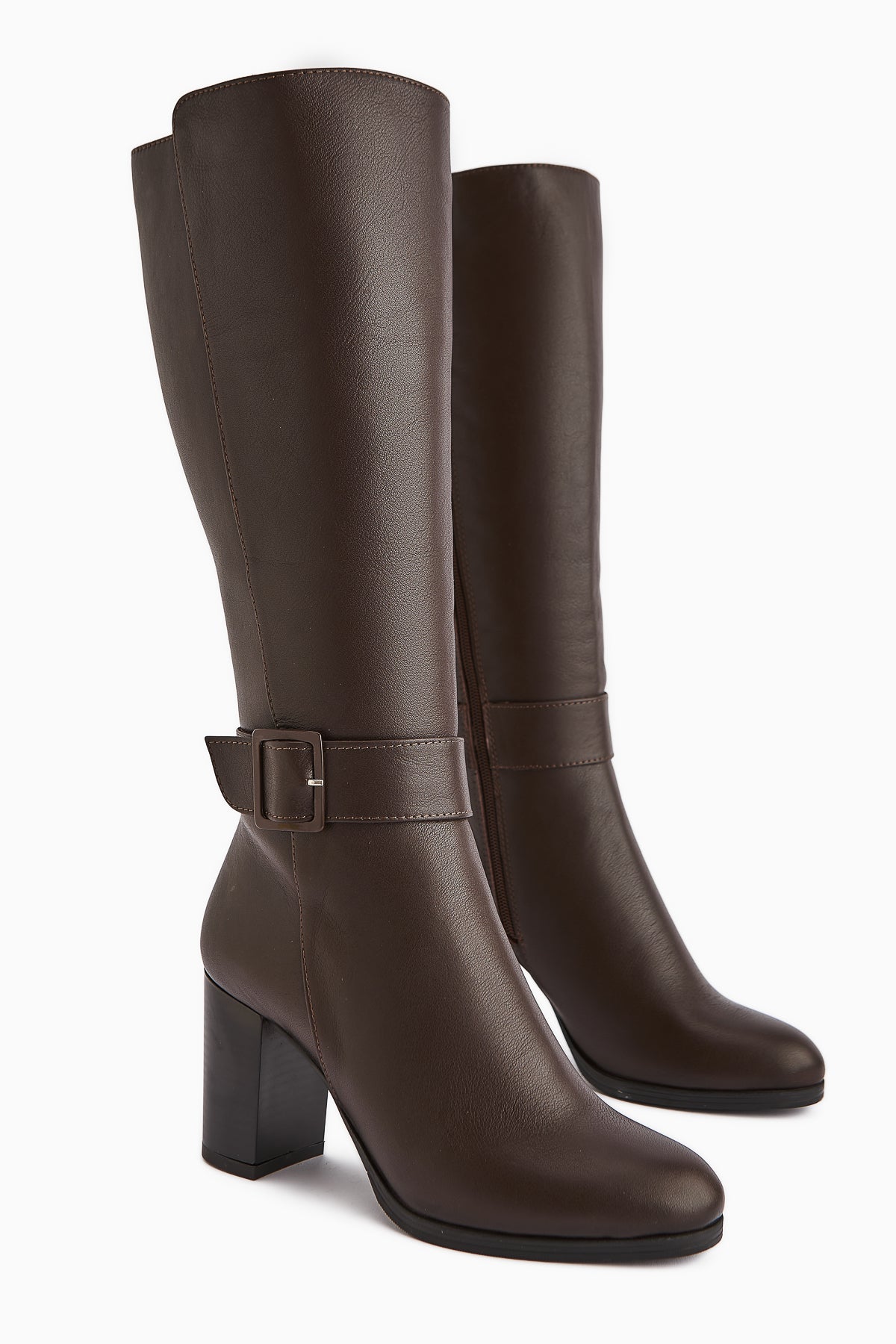 Jeen Genuine Leather Coffee High-Heel Women's Boot