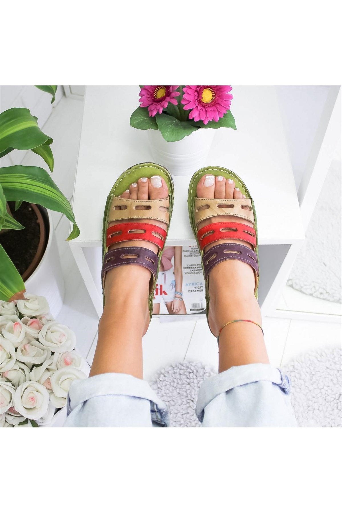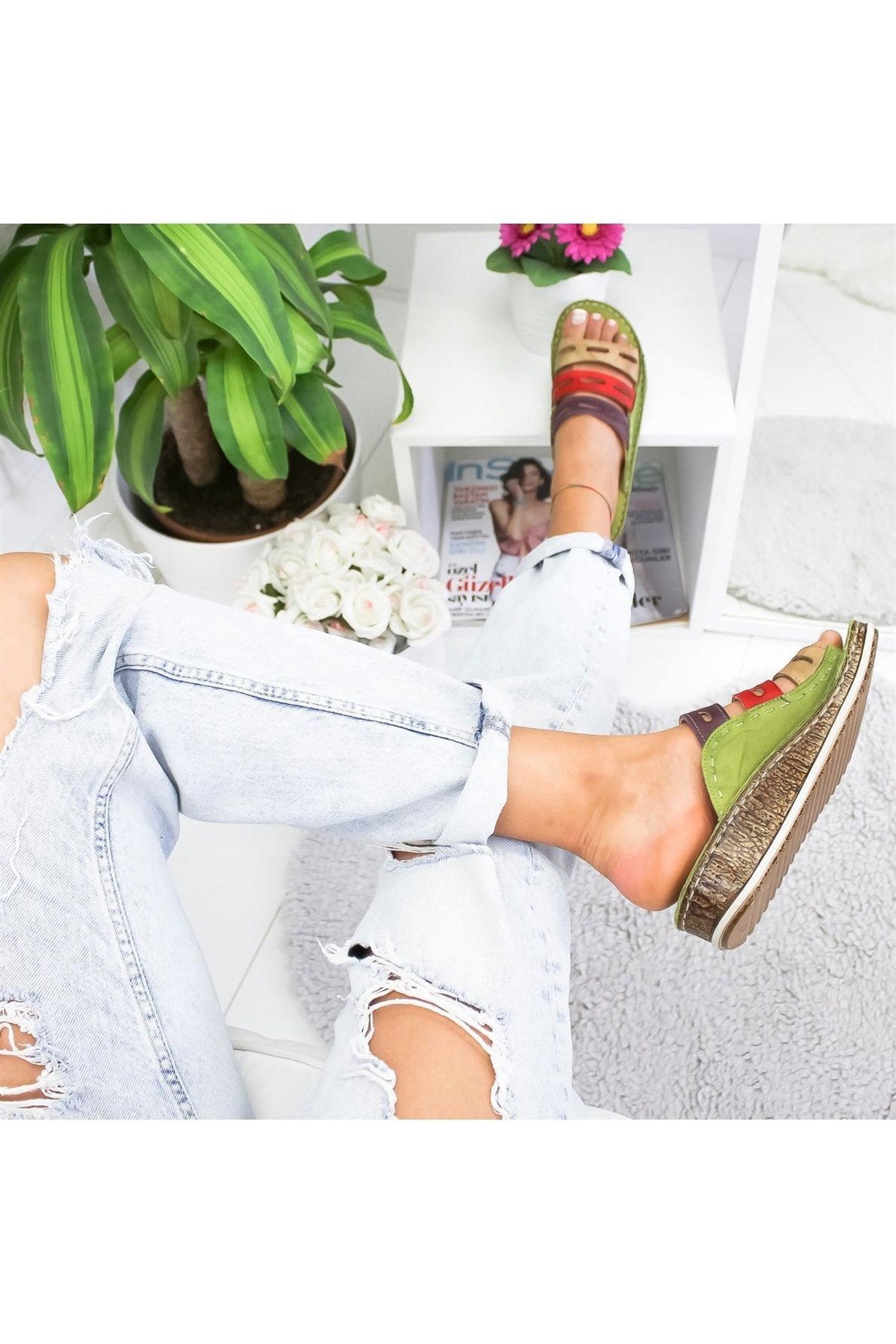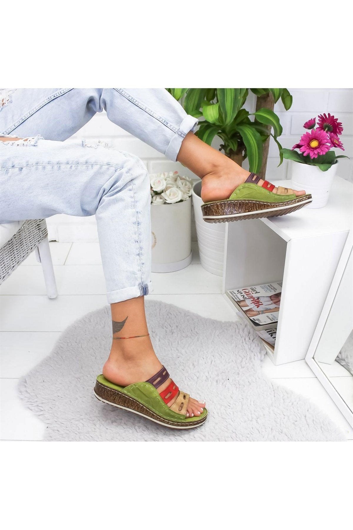 Joelle Grüne Komfort-Pantoffeln mit Laserschnitt aus Echtem Leder