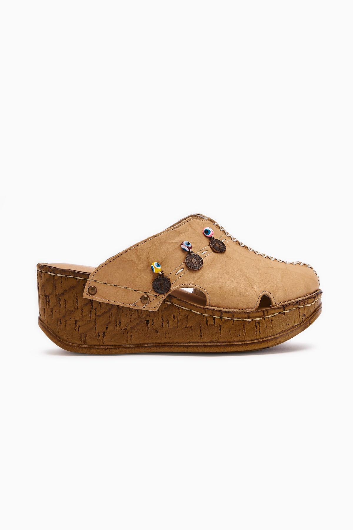 Mabel Genuine Leather Antique Mink with Evil Eye Detail Comfort Clog Slipper