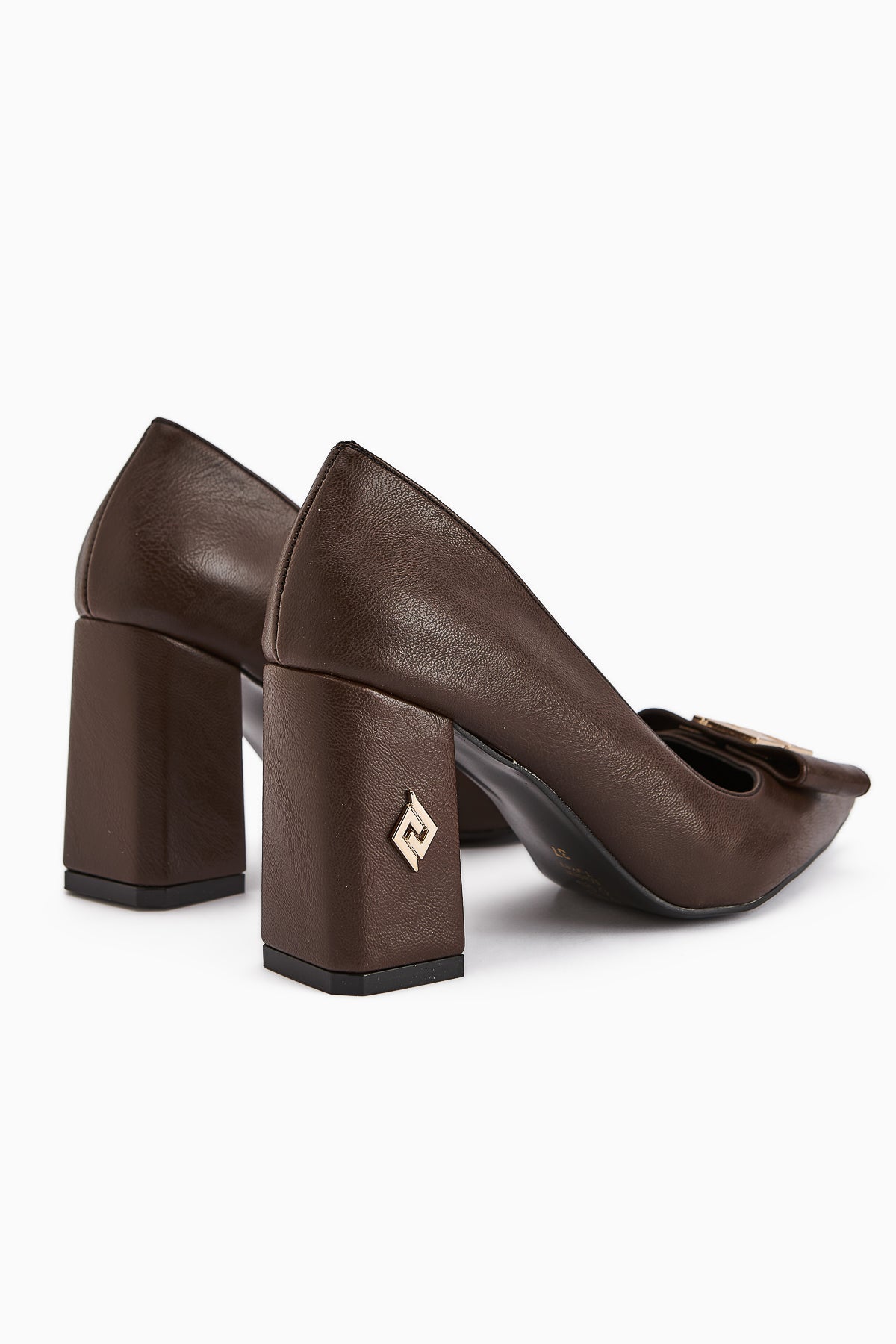 Melly Women's Coffee Buckled Chunky Heel Shoe