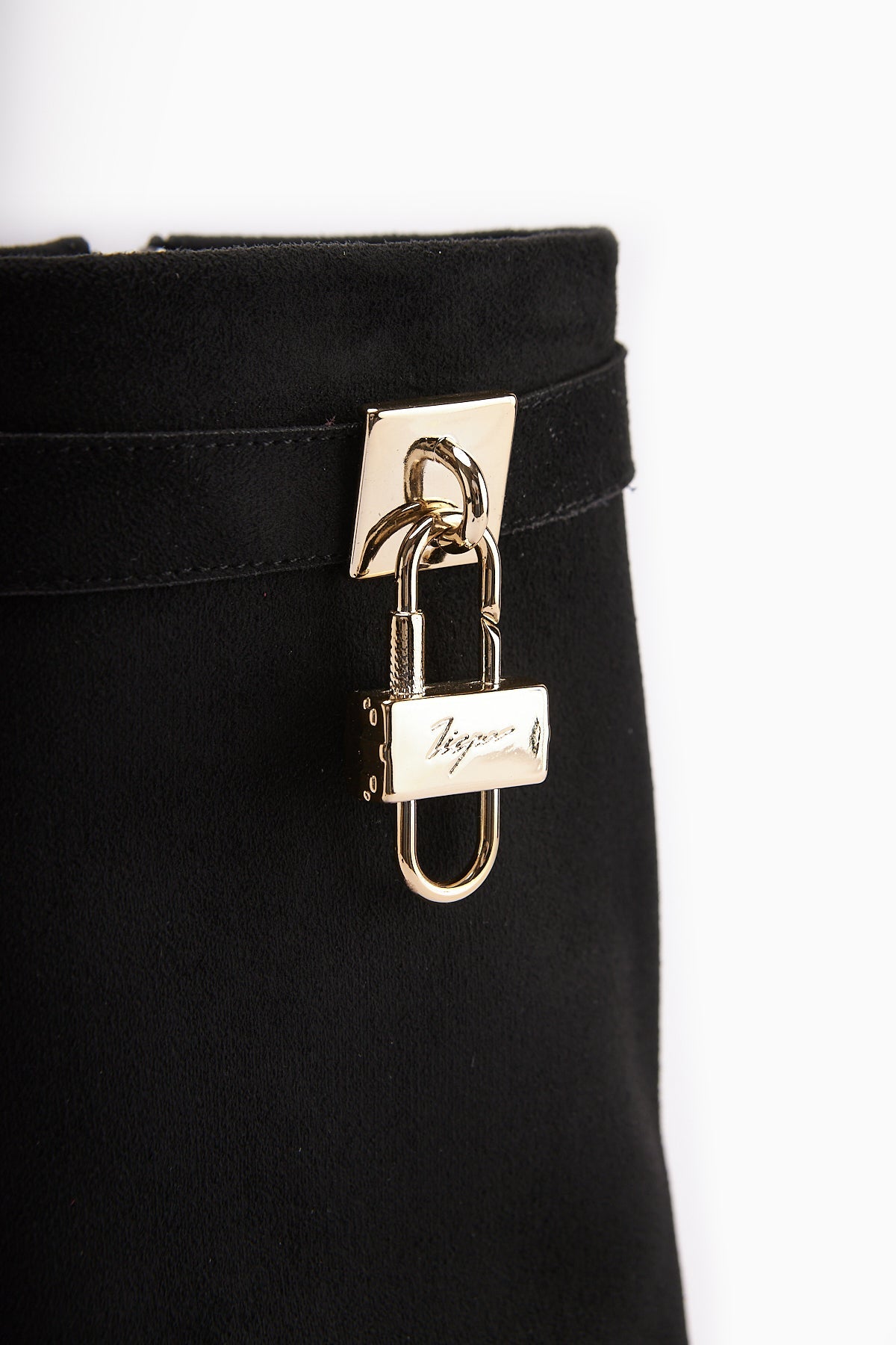 Nisha Black Suede Chunky Heeled Women's Boot with Tassel