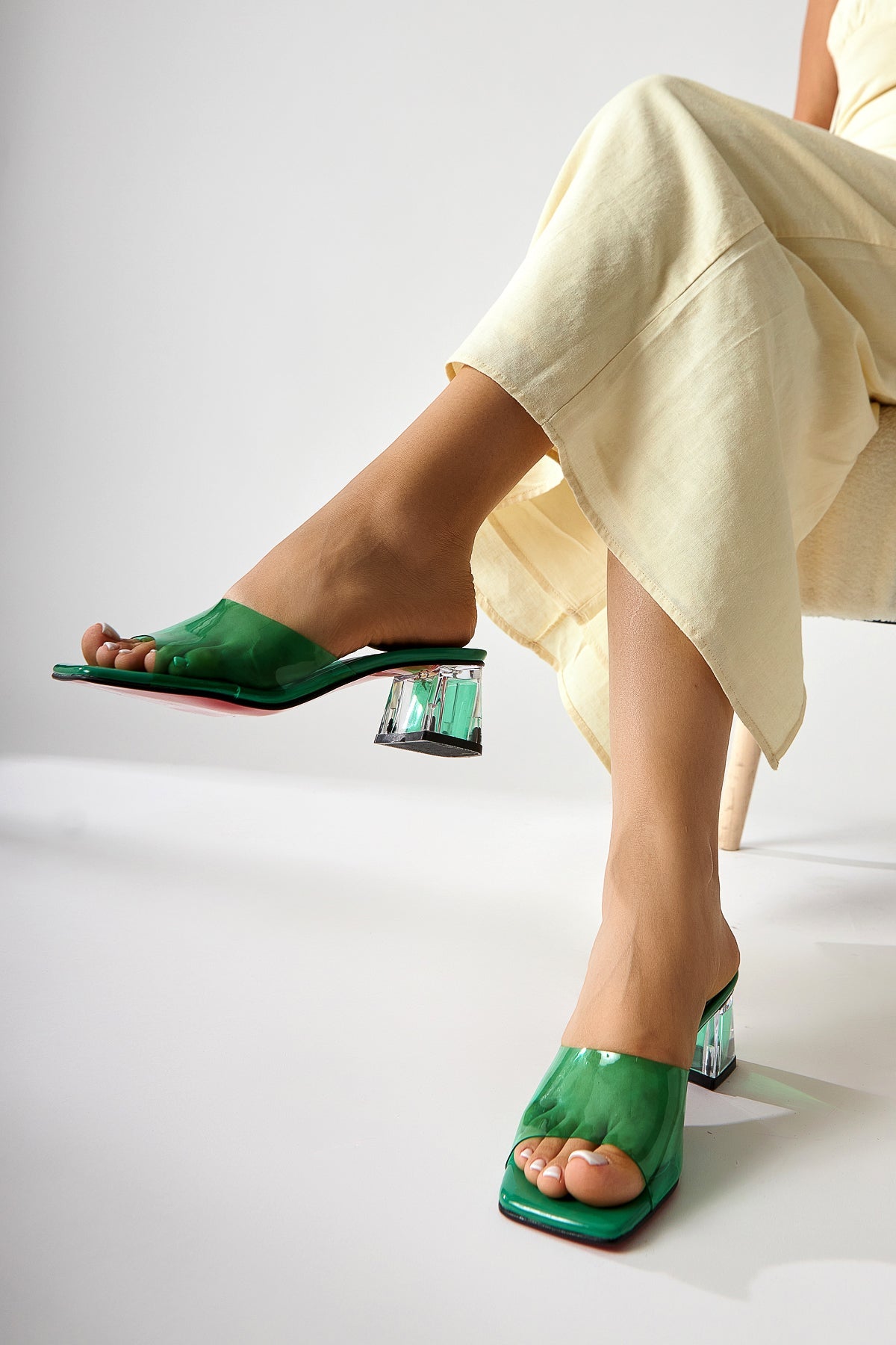 Persa Grün Transparenter Riemen Transparenter Absatz Damen Hausschuhe