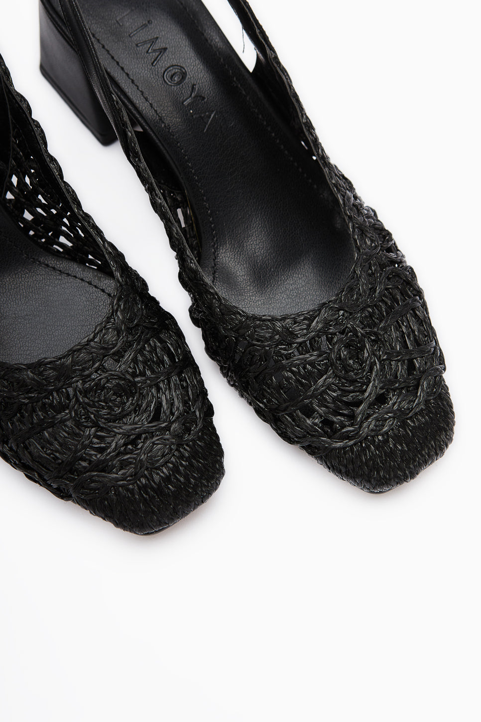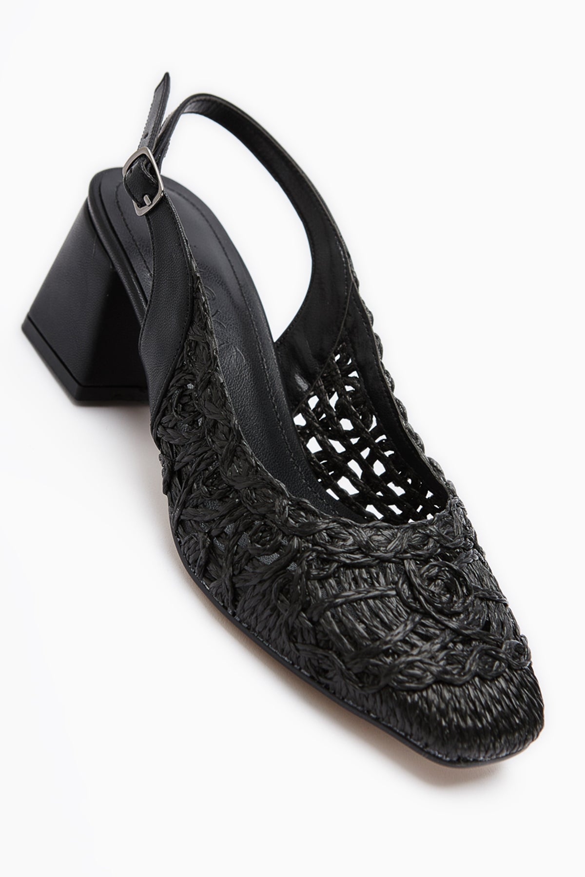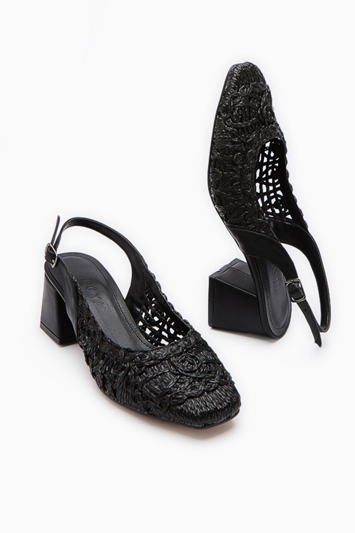 Ronja Damen Schwarz Gewebter Quadratischer Zehensandale
