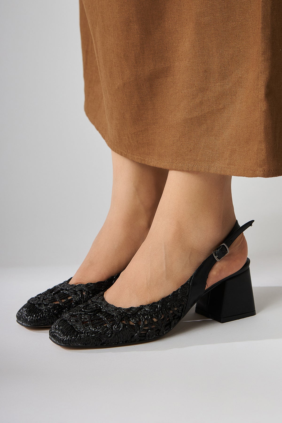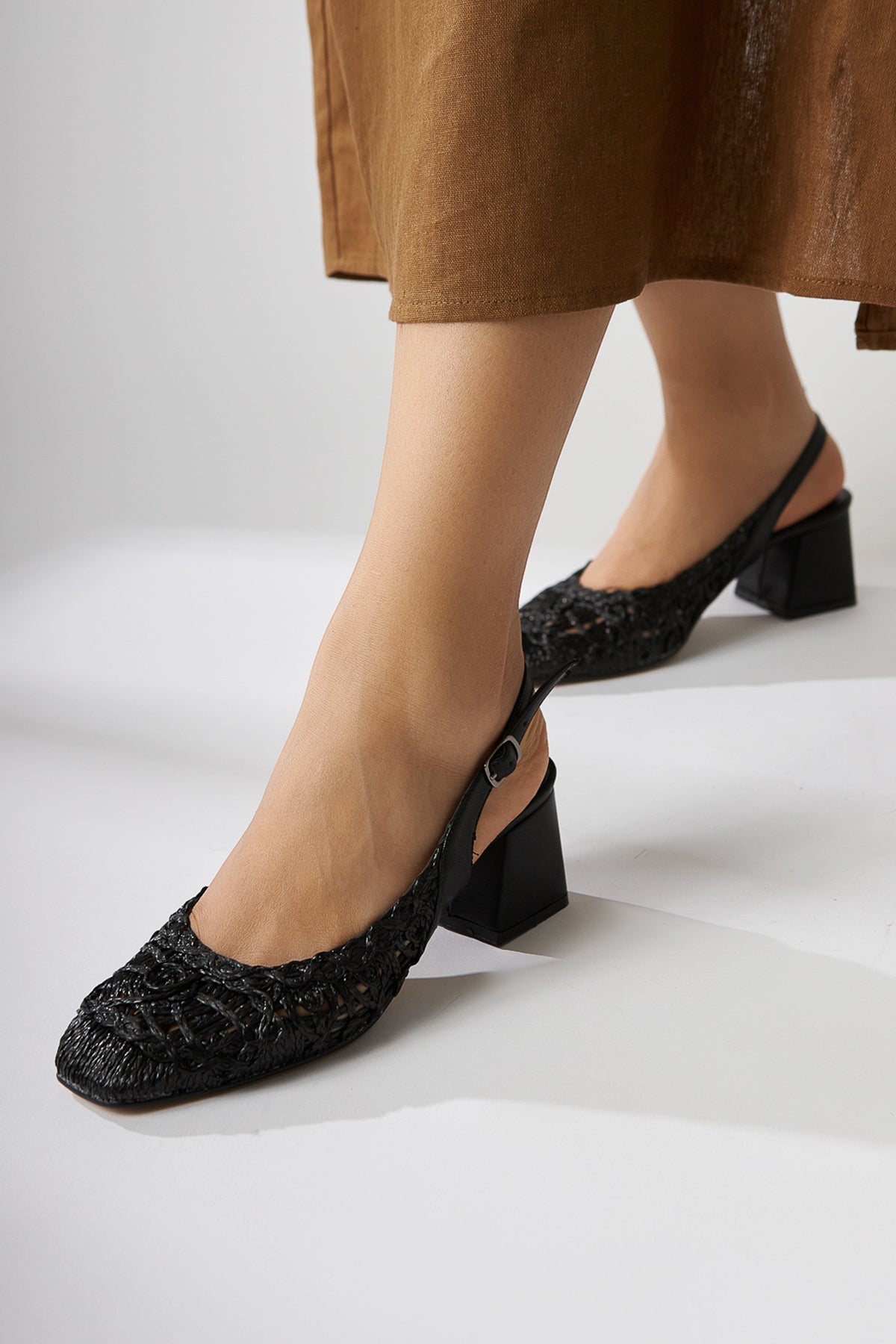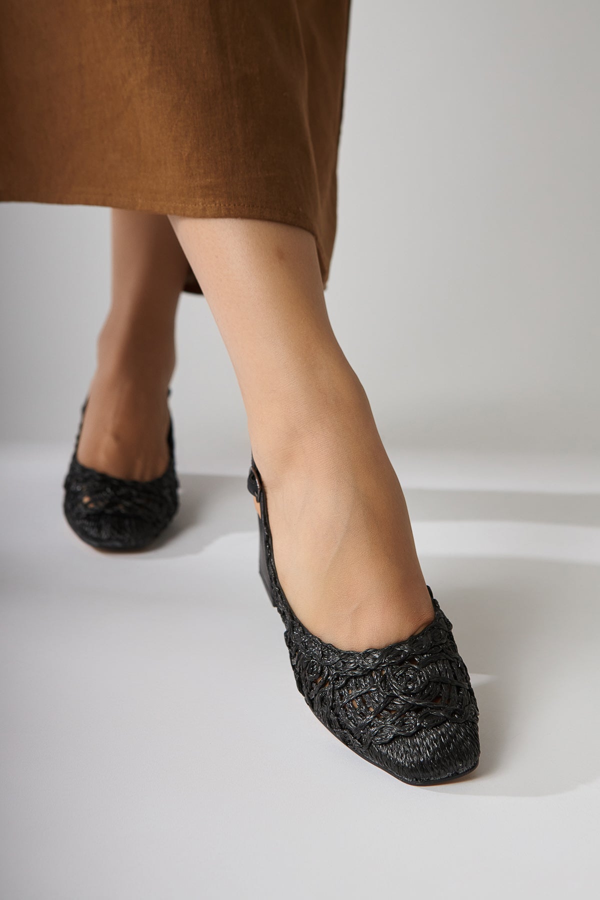 Ronja Damen Schwarz Gewebter Quadratischer Zehensandale