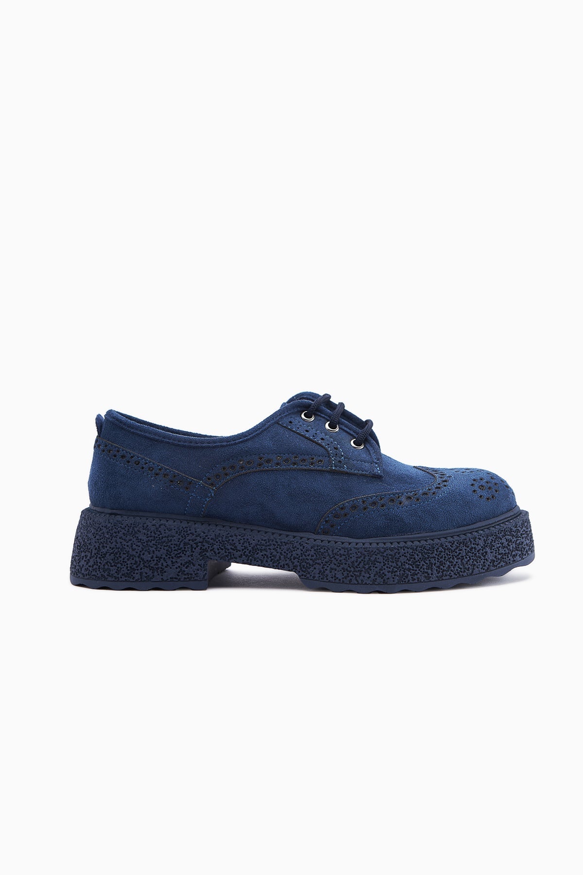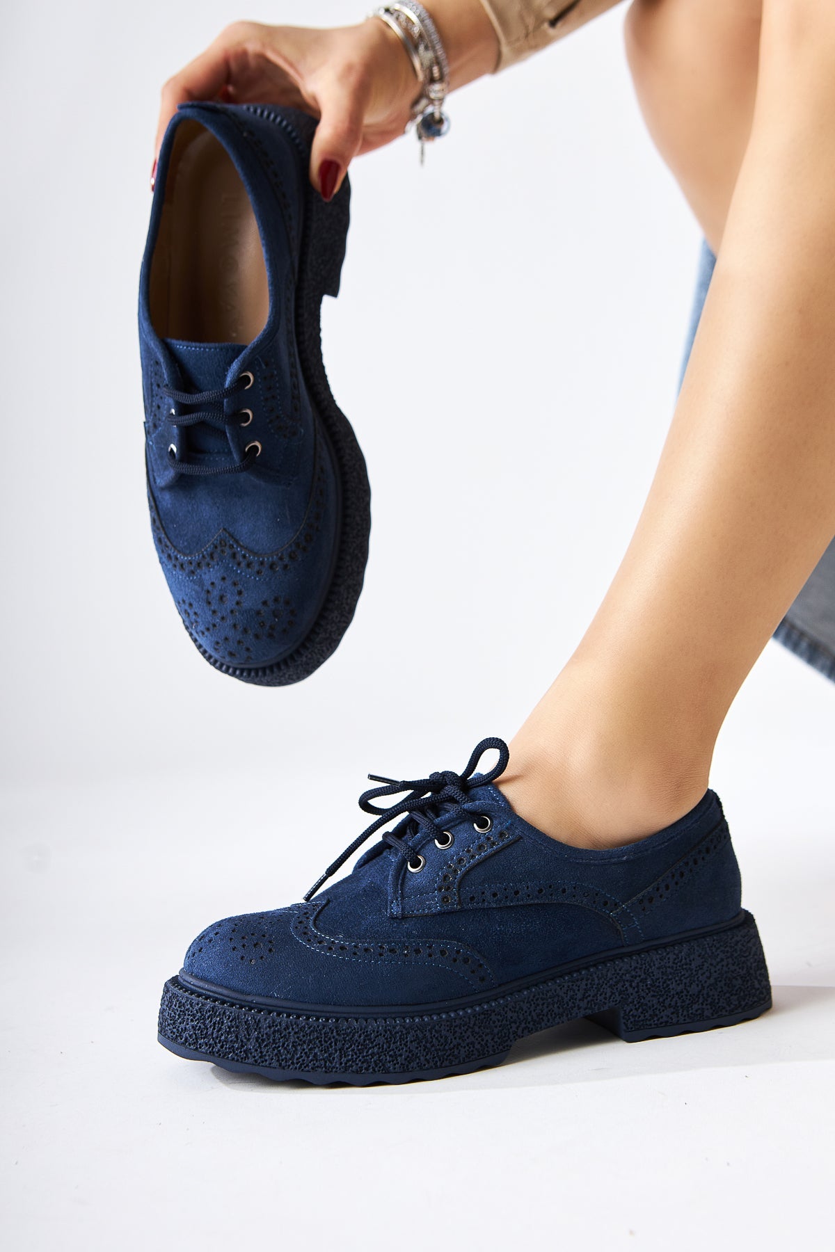 Rossy Marine Wildleder Ovaler Zehen Laser Cut Täglicher Schuh