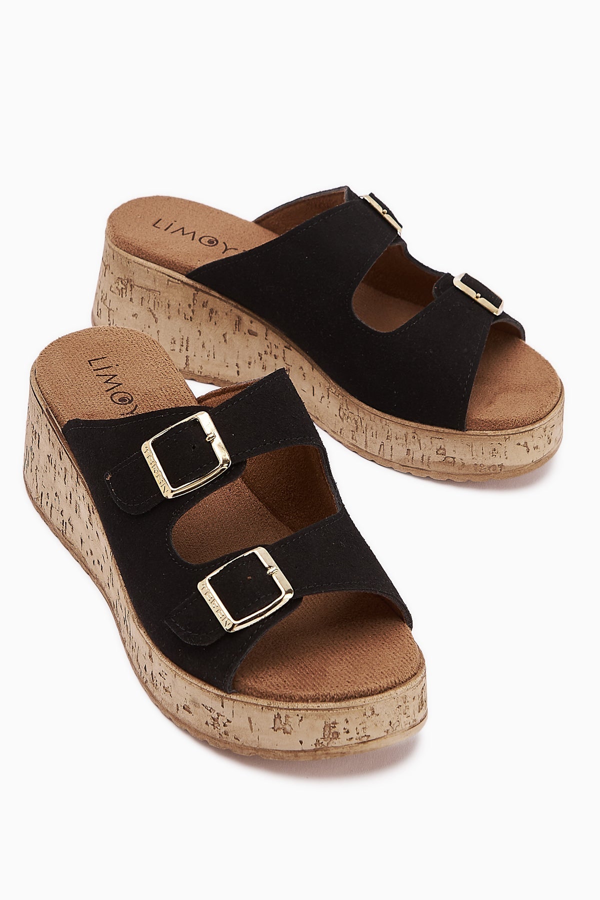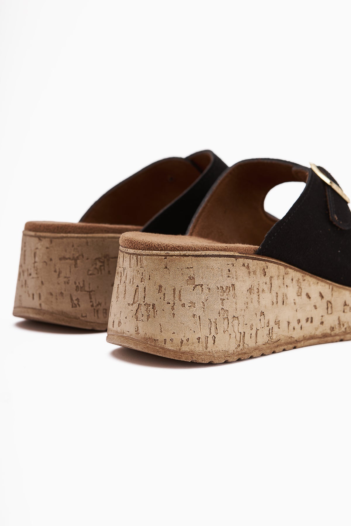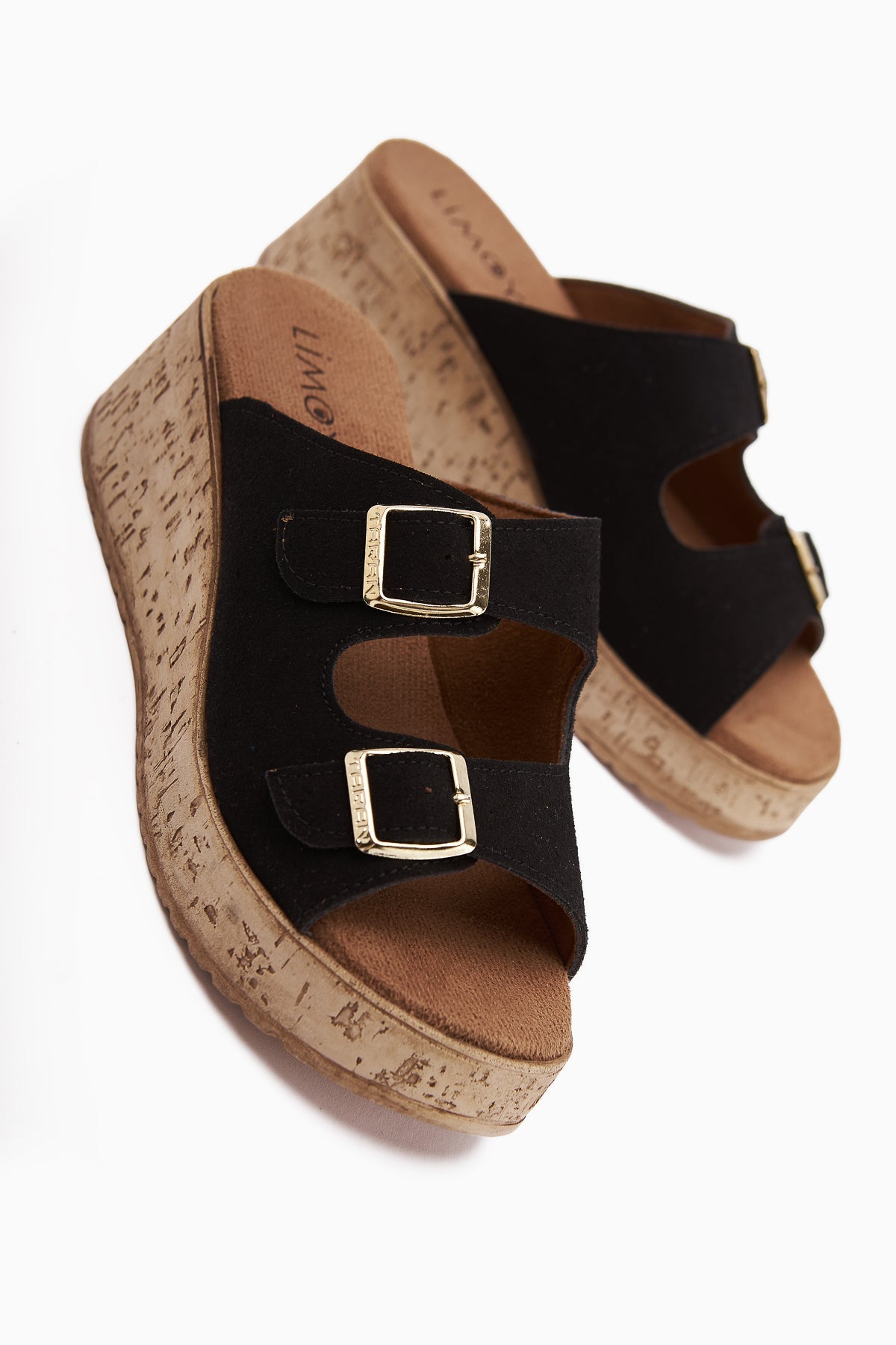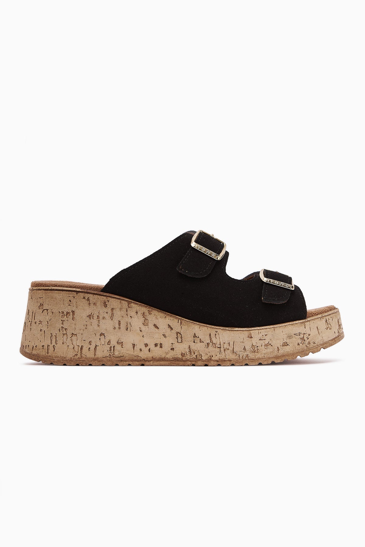 Samina Schwarze Doppelriemen Blockabsatz Damen Hausschuhe