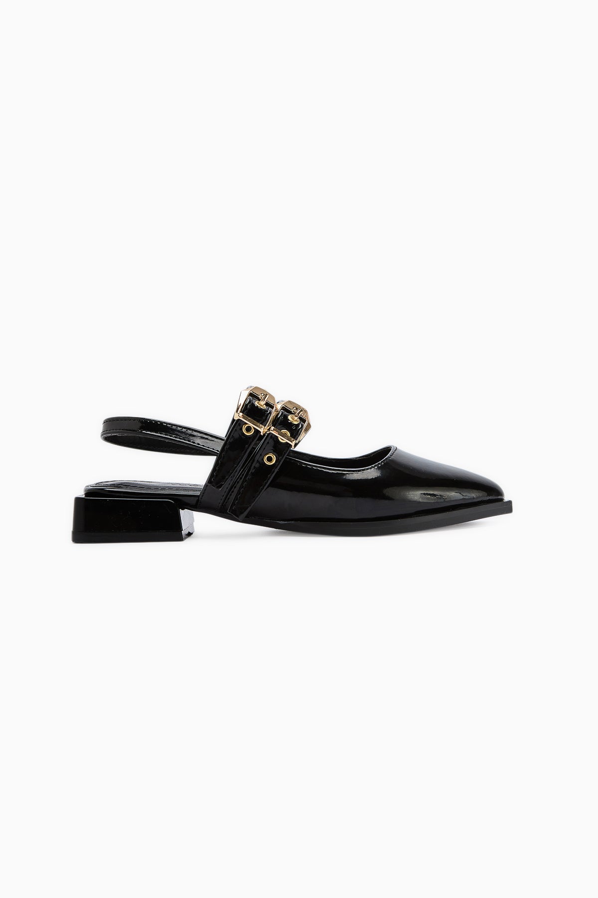 Siran Damen Schwarze Lackleder Doppelriemen Sandale
