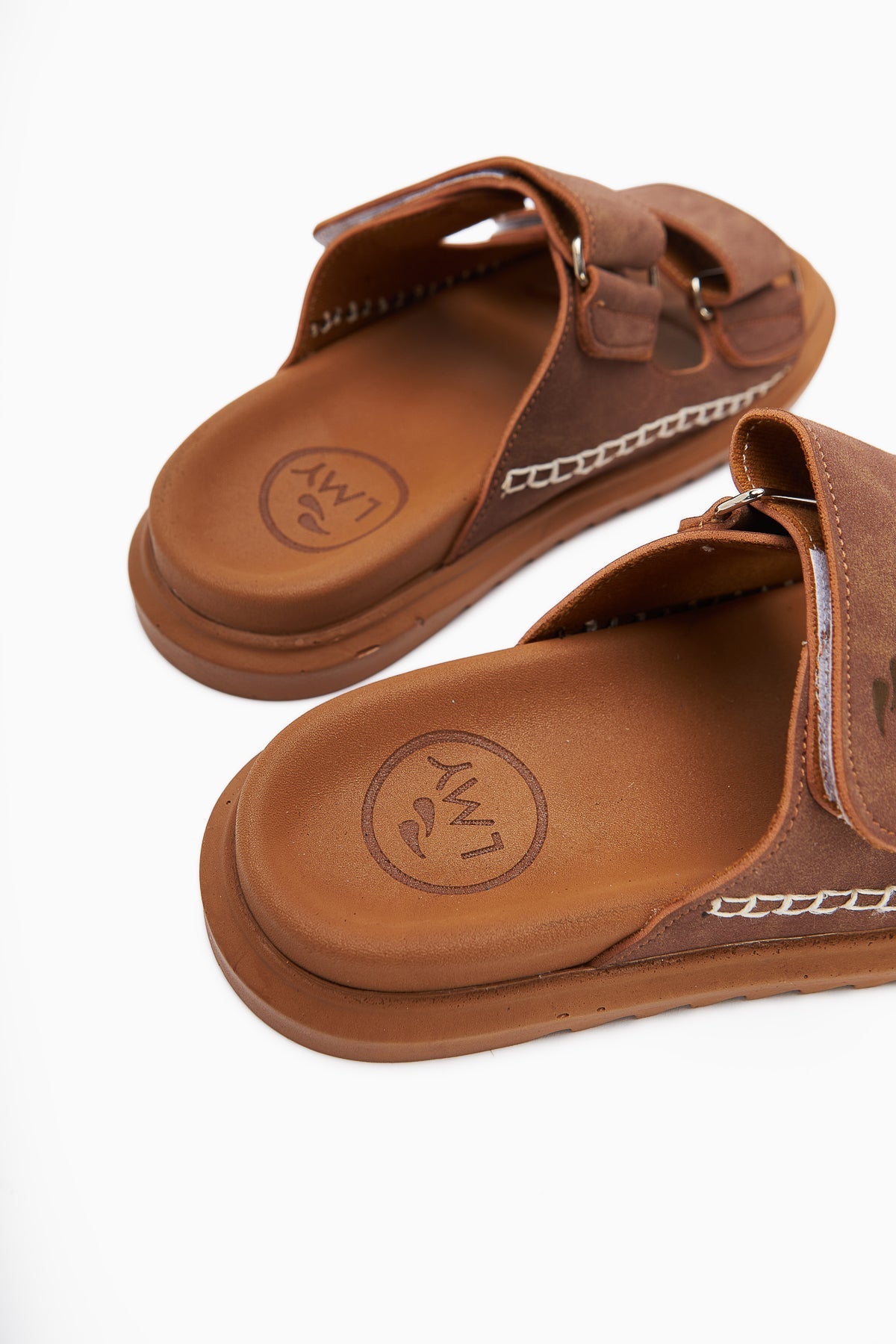 Yumi Damen Taba Hausschuhe mit Stickerei Detail und Doppelriemen
